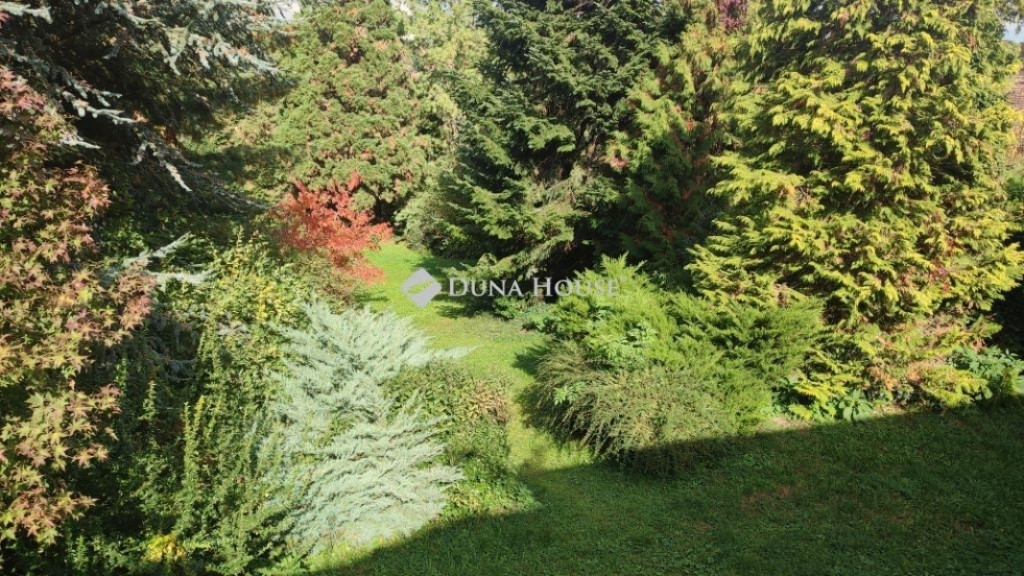 A ház egy 1324 m²-es, gondozott, ősfás telken fekszik, ahol a buja növényzet és egy impozáns mamutfenyő biztosítja a páratlan hangulatot.
