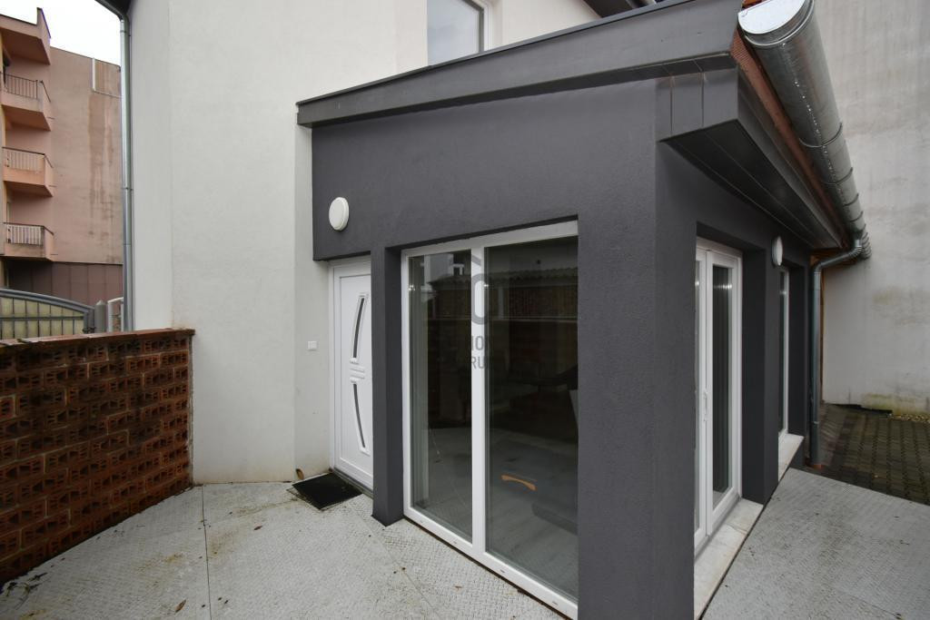 Az első szinten lévő 90 m2-es lakásban előszoba, nappali + étkező + konyha, szoba, fürdő, 2 WC, gardrób és 2 db erkély lett kialakítva.