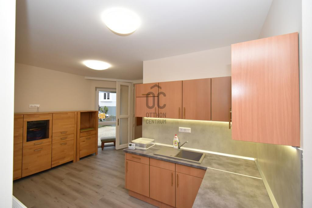 A földszinti, utca fronti és hátsó bejárattal is rendelkező akadálymentesített lakás 78 m2-es, amerikai konyhás nappali, szoba, fürdőszoba + WC, előszoba, terasz helyiségekből áll.