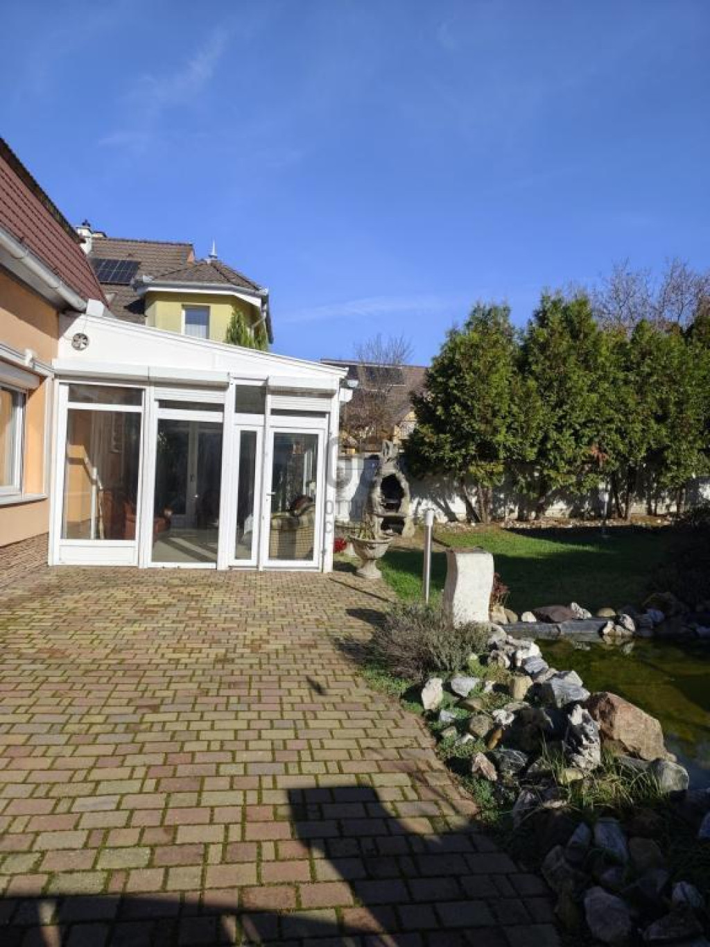 A kert különlegessége a hangulatos halastó, amely nemcsak látványos elem, hanem a pihenés és a kikapcsolódás tökéletes helyszíne is.