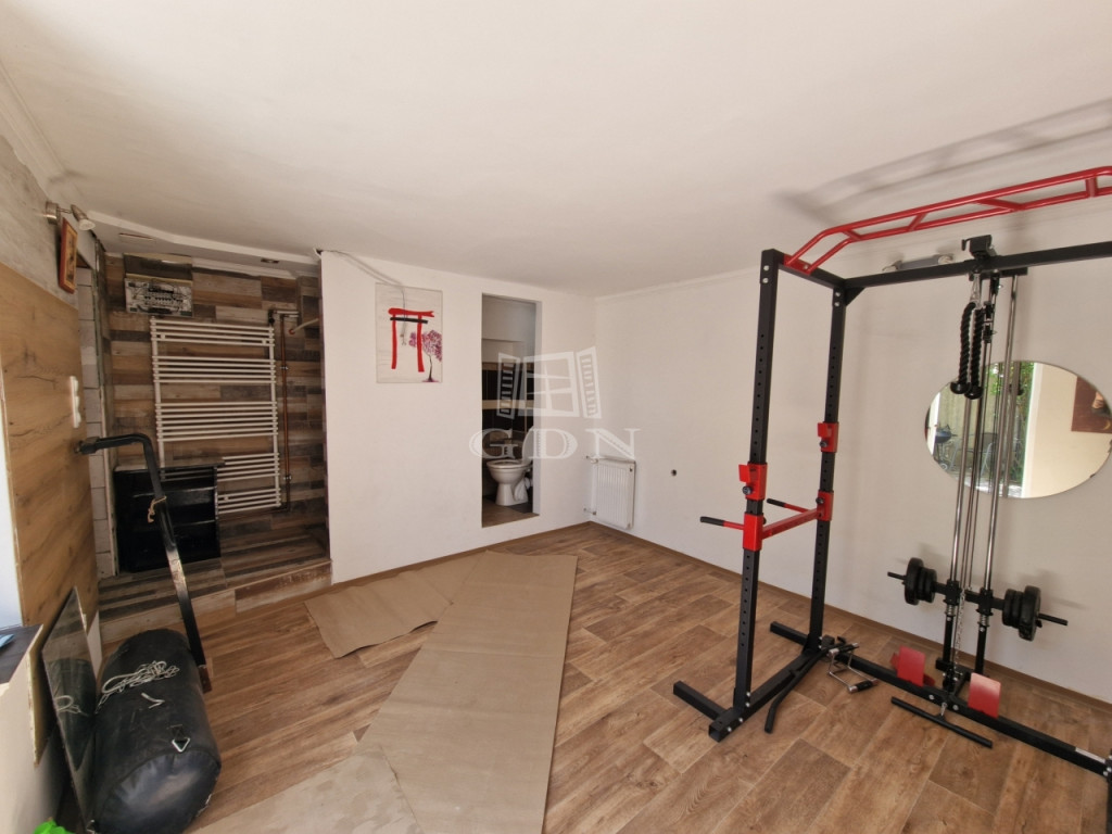 A födémen 20 cm XPS, a külső falakon 5 cm EPS és nemes vakolat található, vezetékelése megtörtént, a biztonságért riasztó rendszer felel. Az alsó rész felújítása folyamatban van, melynél a fali és padlóburkolatok hiányoznak.