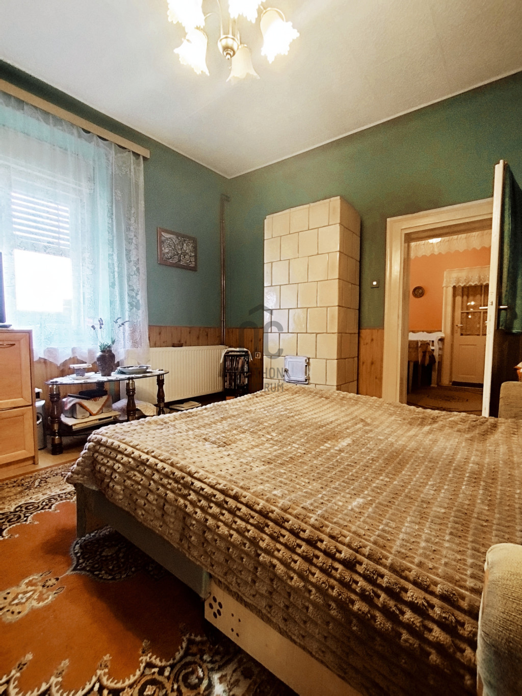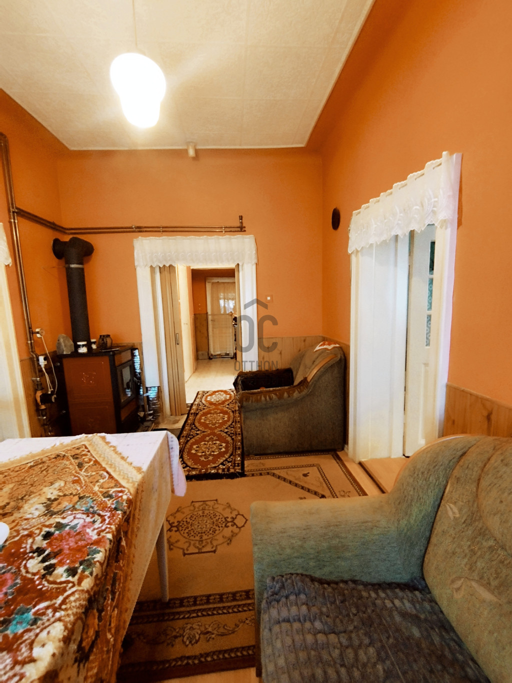 A szobákban hangulatos dekormenyezet , a beltéri ajtók jó állapotú és fa szerkezetűek.