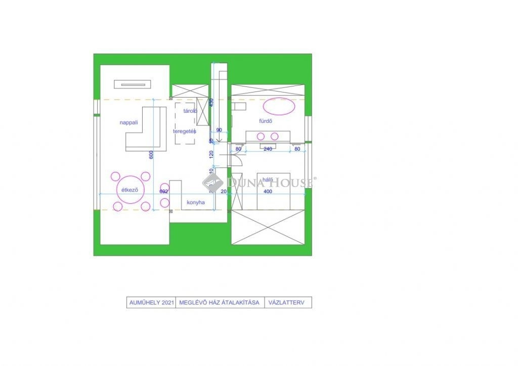 A házban a felújítási munkálatok már elkezdődtek:- új tető épült modern fémfedéssel,- a falakra 20 cm szürke EPS hőszigetelés, a tetőbe 25 cm cellulóz szigetelés került,- az elektromos hálózat és a vízvezetékek cseréje megtörtént,- háromrétegű fa nyílászárók lettek beépítve,- a fürdők és konyhák kiállásai elkészültek, a konyhában 3D terv alapján.A belső terek szerkezetkész állapotban vannak, így a burkolatok, festés, szaniterek és a gépészet kialakítása az új tulajdonosra vár. Ez lehetőséget ad arra is, hogy az alaprajz bizonyos keretek között szabadon alakítható legyen, így mindenki a saját igényeire formálhatja az otthont. A fűtési rendszer kiépítése (a padlószerkezet elő van készítve padlófűtéshez, hőszivattyús rendszer volt tervezve), a víz- és csatornahálózatra való rákötés (a díj és engedélyek már rendezve), burkolatok, festés, szaniterek és gépészet befejezése még az új tulajdonosra vár.