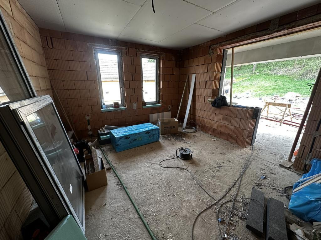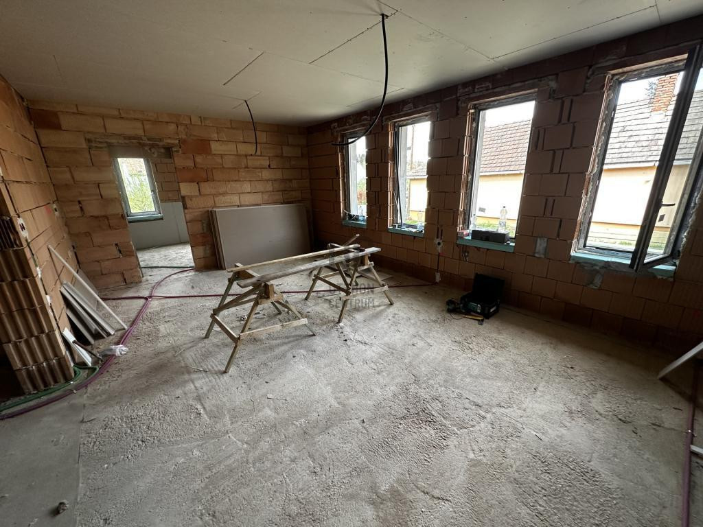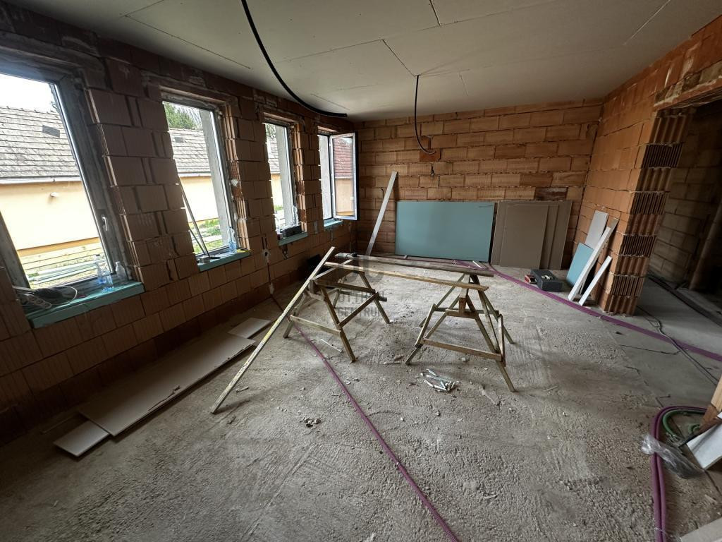 - Konyha-étkező-nappali, 3 szoba, szélfogó, közlekedő, háztartási helyiség, WC, fürdő, garázs helyiségek lettek kialakítva.