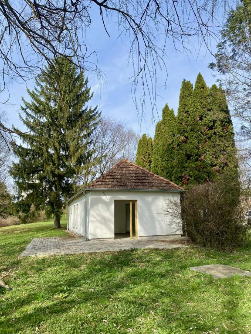 -1 vendégházból (48 nm: nappali + 1,5 háló), mely kényelmesen kiszolgál átutazóban lévő 4 fős
