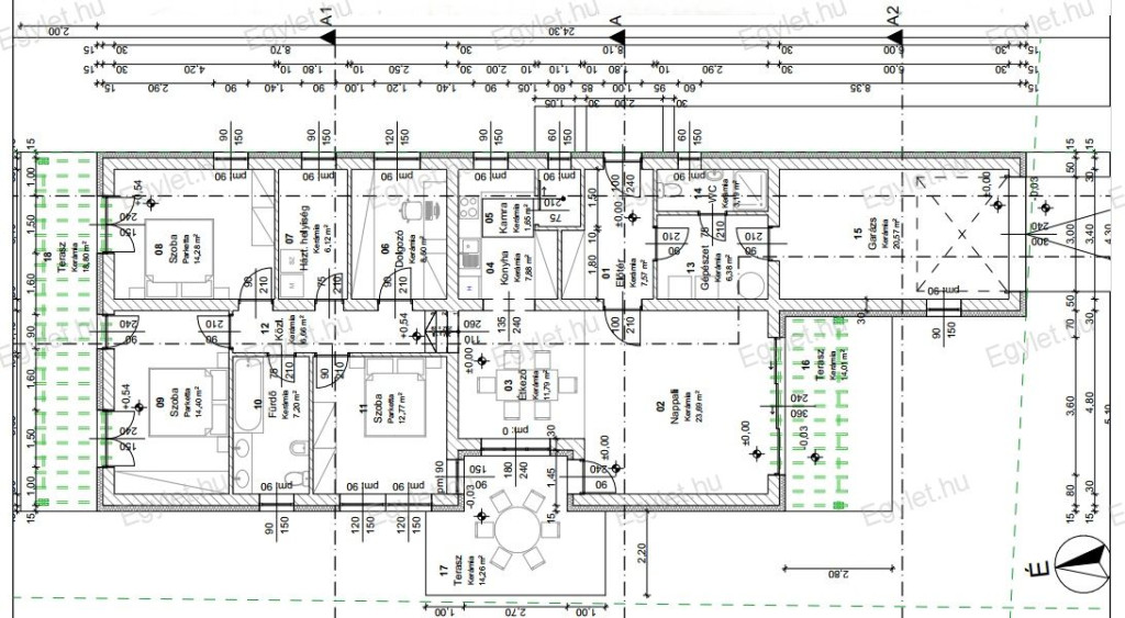 Az ingatlan 21 nm es garázzsal és három nagy méretű terasszal rendelkezik. A teraszok méretei: 14 nm, 19 nm és még egy 14 nm-es terasz. A ház fűtéséről hőszivattyú gondoskodik, ehhez társul egy napelem rendszer. Ennek köszönhetően a rezsi költségek minimalizálódnak. A ház egy 750 nm-es telken fekszik, további gépjármű beállási lehetőséggel.