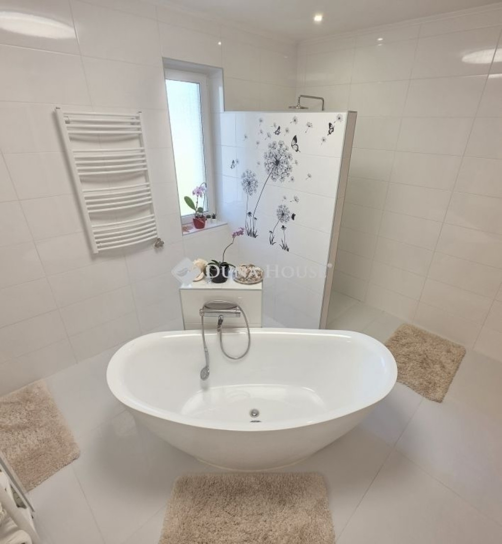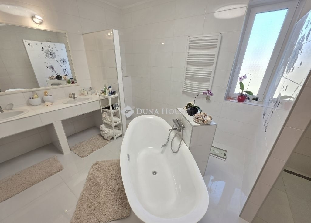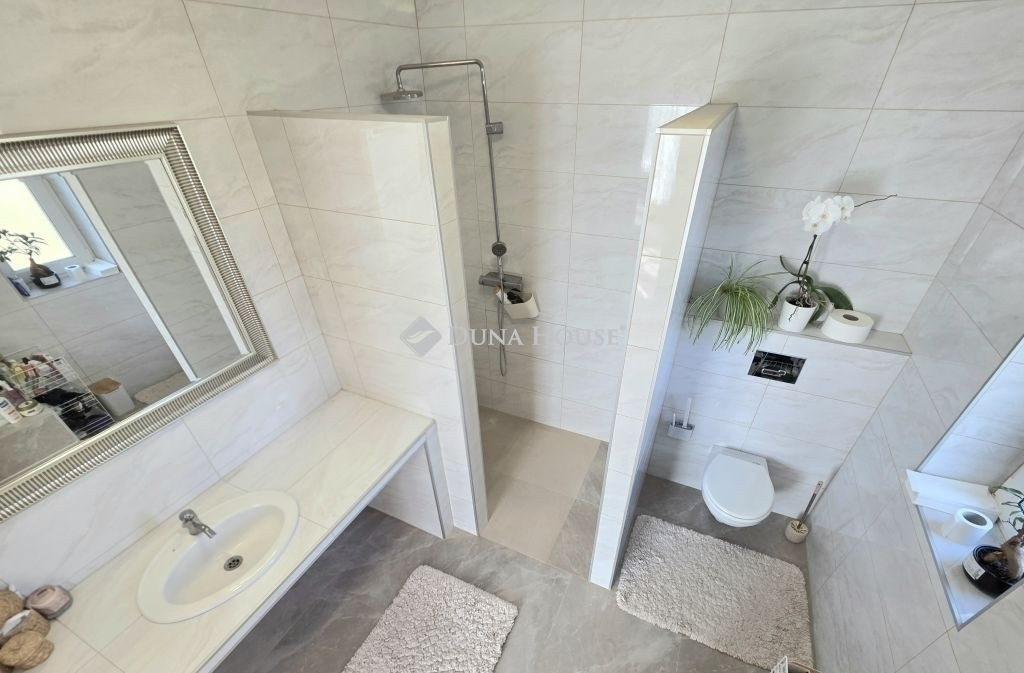 Nagytarcsa Modern családi ház 185m²+140m²/ 966 m² telken beépítésre készen álló tetőtér, télikert,borospince nagy teraszFtEladó egy 2022-ben épült, modern családi ház, amely kiemelkedő műszaki tartalommal és átgondolt elrendezéssel készült. Az ingatlan 185 m²+140m² lakóterületű, 966 m²-es telken, tágas terekkel és számos kényelmi megoldással.Az otthon központi része az 53 m²-es kandallós nappalikonyhaétkező, amely világos, nagy üvegfelületekkel kapcsolódik a műfüves teraszhoz és a kerthez. A nappali burkolata 4,5 cm vastag süttői márvány, amely elegáns megjelenést és kellemes hőt biztosít. A ház energetikai besorolása A+, falazata 30 cm ytong, amelyet 20 cm kőzetgyapot szigetelés egészít ki. A tető betoncserép fedéssel készült, a tetőszerkezet több ponton lemezburkolattal védett, az ereszrendszer pedig rejtett kialakítású, esővíz gyüjtő tartállyal.Az ingatlan főbb jellemzői 185 m²+140m² lakótér 966 m² telek 4+2 fél szoba 2022-ben épült Energetikai besorolás: A+ Vaillant gázkazán minden helyiségben külön korszerű klíma és padlófűtés háromrétegű műanyag nyílászárók 30 cm falazat + 20 cm kőzetgyapot szigetelés betoncserép tető riasztórendszerKényelmes elrendezésA ház praktikus elosztású, nagy terekkel: Nappali konyha étkező: 53,13 m² Szülői háló: 17,36 m² Szoba: 12,88 m² Szoba: 11,88 m² Dolgozó: 7,48 m² Gardrób: 6,74 m² Fürdőszoba: 9,86 m² Fürdőszoba: 6,77 m² Mosókonyha: 8,14 m² Háztartási helyiség: 6,60 m² Közlekedő: 7,83 m² WC: 1,74 m² Szélfogó: 1,82 m²A szülői háló külön gardróbbal és saját fürdőszobával rendelkezik.A nagy fürdőszobához szauna helyiség tartozik, amely már kialakításra került, csak burkolni szükséges.Tetőtér lehetőség:A ház tetőtere már elő van készítve a beépítésre, amelynek hasznos alapterülete kb. 140 m².A födém 7 rétegrendű, amely kiváló hő- és hangszigetelést biztosít.Külső terek télikert: kb. 22 m² (műgyanta ajzat) alatta borospince (víz, villany) fedett tornác: 25,66 m² terasz: 21,70 m² nagy méretű garázs: 47,19 m² (víz, villany, csatorna, 30 ytong+20 hungarocel, szigetelt garázskapu)Extrák és műszaki megoldások keringetett melegvíz rendszer (azonnali meleg víz) víztisztitó, vigylágyító rendszer. esővíz szikkasztó rendszer a telken belül 3 db kerti csap külső szellőző kiállások előkészítve lemezburkolattal védett tetőszerkezeti elemek rejtett ereszcsatorna rendszerBefektetési lehetőség:Az ingatlan egyik különleges adottsága, hogy átalakítható négylakásos társasházzá, ennek műszaki és közmű előkészítése már megtörtént.Ezáltal befektetésként vagy többgenerációs otthonként is kiváló választás.KörnyezetNagytarcsa Budapest közvetlen közelében található, gyors autópálya kapcsolattal. A település csendes, családbarát környezetet kínál, miközben a főváros rövid idő alatt elérhető.Ha egy modern, energiatakarékos, prémium műszaki tartalmú otthont keres nagy telekkel és további bővítési lehetőséggel, ezt az ingatlant érdemes személyesen is megtekinteni.Ft