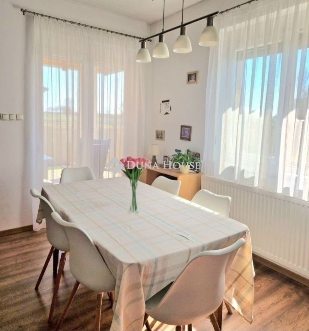 Nagytarcsa 124 millió FtCsendes, zöld környezetben, mégis Budapest közelében keresel modern otthont? Ez az újszerű ikerházfél ideális választás lehet.Eladó Nagytarcsán egy 2017-ben épült, újszerű állapotú, földszintes ikerház egyik fele. Az ingatlan 98 m² alapterületű, praktikus elrendezéssel: amerikai konyhás nappali + 3 külön nyíló szoba. A házhoz 500 m²-es, gondozott telekrész tartozik.Főbb előnyök: Tágas, világos nappali közvetlen kertkapcsolattal Fedett terasz (12 m²) 3 külön nyíló hálószoba Külön WC és fürdőszoba Beépített konyha gépekkel 4 db hűtő-fűtő klíma 10 cm szigetelés Elektromos kapu előkészítés Redőny és szúnyogháló minden ablakon 2 autó számára kialakított udvari beállóA kert rendezett, több funkciós: pihenésre, kertészkedésre és családi programokra is alkalmas. Automata öntözőrendszer, magaságyás és gyümölcsfák is megtalálhatók.Környék és elhelyezkedés:Nagytarcsa kedvelt, nyugodt részén található, aszfaltozott zsákutcában. Budapest gyorsan elérhető az M0-s autóúton. A közelben iskola, óvoda, boltok, orvosi rendelő és játszóterek is rendelkezésre állnak.Kinek ideális:Kiváló választás családoknak, akik nyugodt, zöld környezetben szeretnének élni, de fontos számukra a főváros közelsége is.Ne maradj le róla hívj bizalommal és nézd meg személyesen!