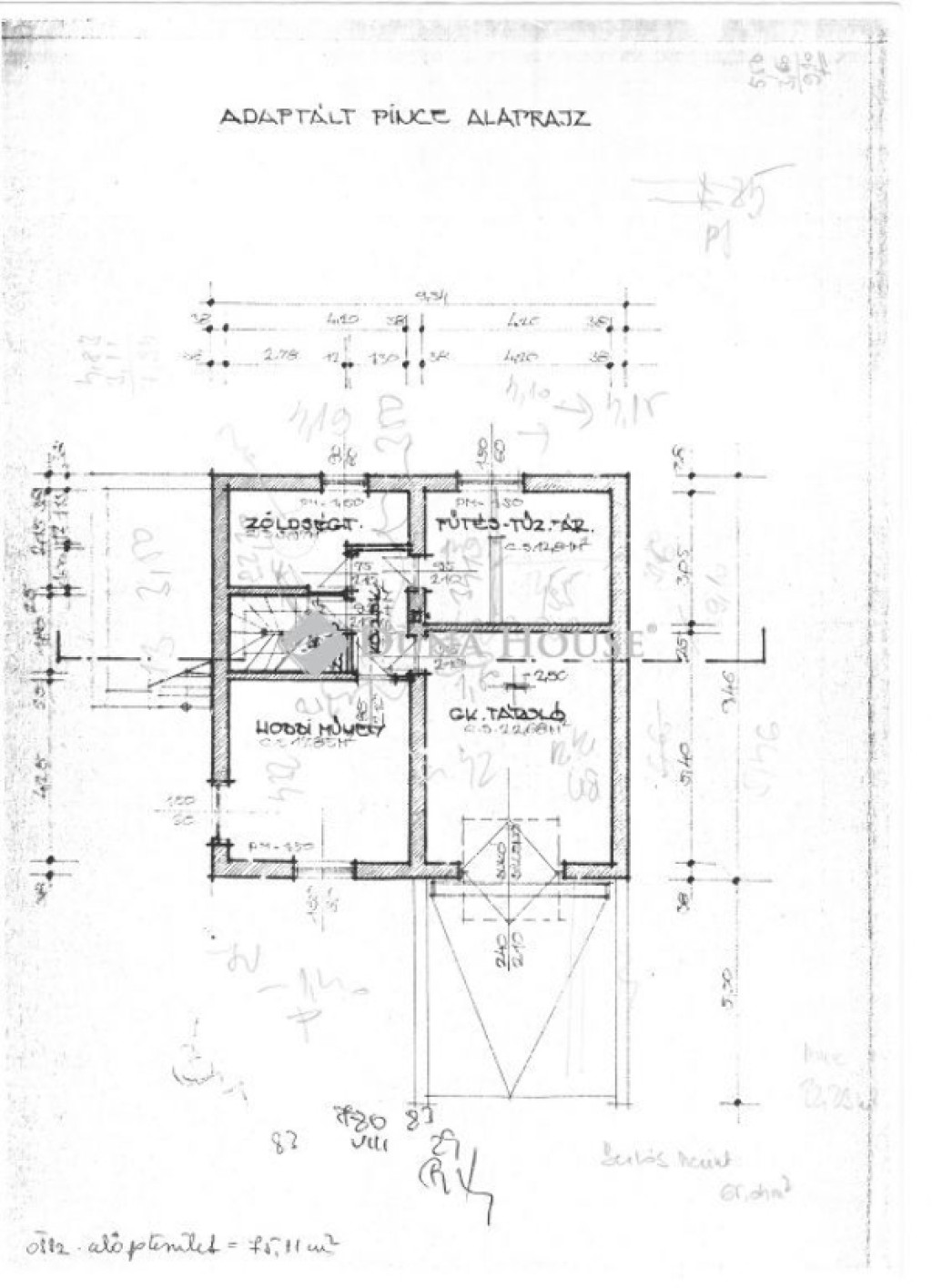 Pince kívülről és belülről is megközelíthető. Az egész ház alatt tágas, száraz pince szint található. Belülről lépcsőn keresztül és kívülről külön bejáraton is megközelíthető. Tárolásra, műhelynek, konditeremnek vagy akár hobbi célra is ideális.