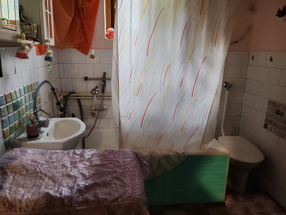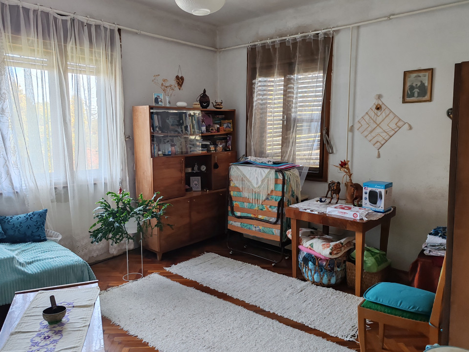 Fedett teraszról lépünk az előtérbe,ahonnan nyílik a konyha,és 2 nagyszoba,fürdő-wc,spejz.Külön bejárattal,de a házzal egybeépülve van 2 helyiségből álló,szobaként használt épület,beépített klímával.