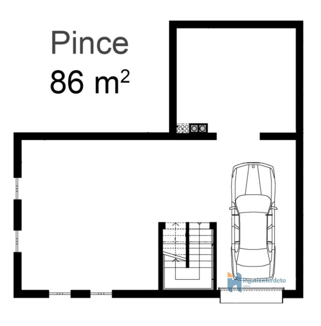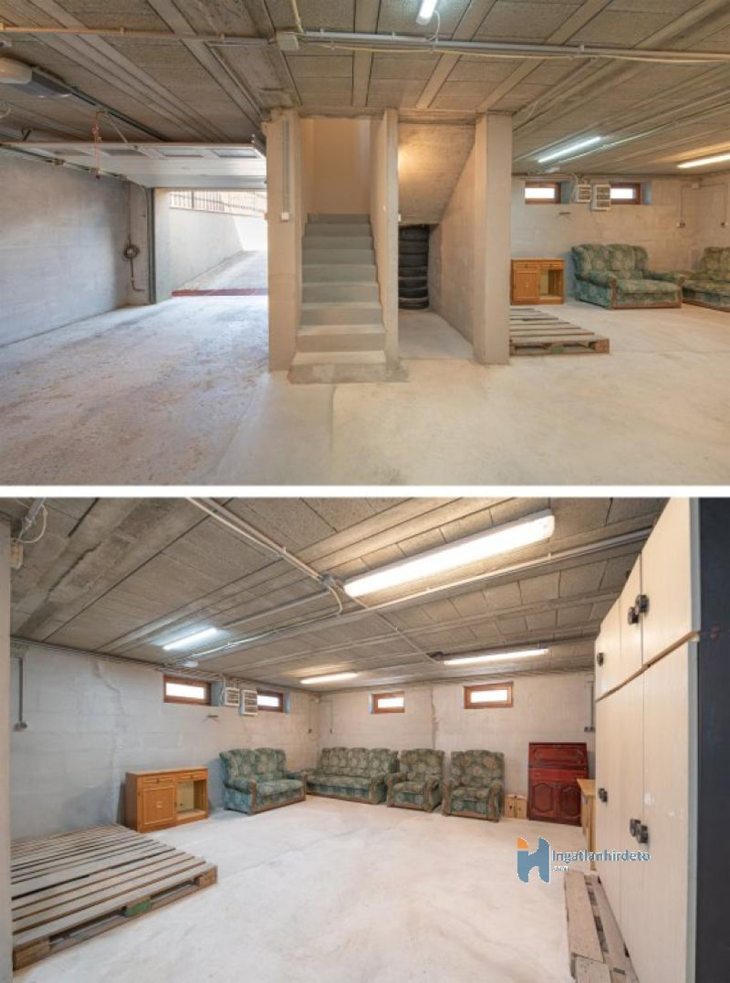 A pincében található minden gépészet (napelem és hőszivattyú beltéri egységei, központi szellőztető rendszer hőcserélője, tartalék vegyes tüzelésű kazán, puffertartály, használati melegvíz tárolók, stb...), garázs és egy nagy egybenyitott tér. A pince nettó alapterülete 86m2, amely 50%-ban számít bele a ház teljes területébe.