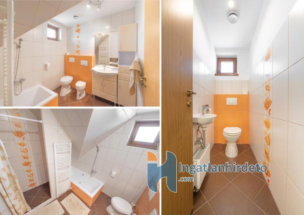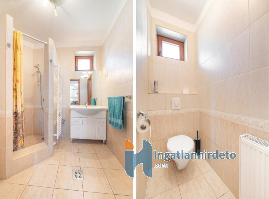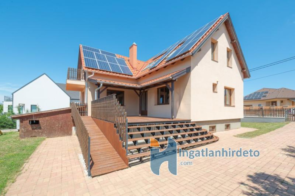 Elhelyezkedése: Belterület Tájolása: Dél-nyugai tájolású Állapota: Újszerű Komfort besorolása: Dupla komfortos Építési éve: 2013 Alapterülete: 195 m2 Telekterülete: 843 m2 Szobák száma: 4 + 3 szoba Közművek: Gáz, Víz, Villany, Csatorna Gázellátás: Telekhatáron Vízellátás: Vezetékes víz Melegvíz-ellátás: Villanybojler Áramellátás: 230V/380 V Fűtés módja: Villany, Egyéb Fűtés típusa: Cirkó, Központi vegyes tüzelésű kazánnal, Megújuló energia, Hőszivattyú Homlokzat állapot: Újszerű Építési mód: Tégla Tető formája: Magas Tető anyaga: Cserép Parkolási lehetőség: Garázsban, Telken Kilátás: Udvari kilátás Napelem: Van Teljesítmény(kW): 6.3 Jellemzői: Alacsony rezsi, Csendes környék, Jó közlekedés, Étkező, Udvari terasz, Amerikai konyha, Beépített konyhabútor, Kert, Kerítés, Parketta burkolat, Egyedi vízóra , Térkő, Zöldterület, Jó közbiztonság, Beépített tetőtér Energetikai besorolás: A+++ Egyéb jellemzők: Erkély, Terasz, Melléképület, Pince, Tetőtér Tv, Internet: Kábeltévé, Internet, Vezetékes telefon Közelben: Iskola, Óvoda, Orvosi rendelő, Bolt, Gyógyszertár, Postahivatal, Vendéglátó egység Rezsi költség(Ft): 10000 Terhelések: Tehermentes ingatlan Eladásra vonatkozó információk: Azonnal beköltözhető, Kizárólag magánszemélyek jelentkezését várjuk