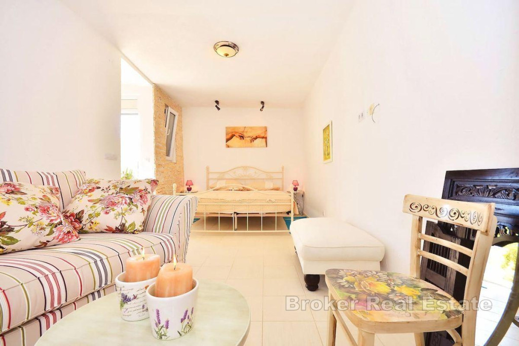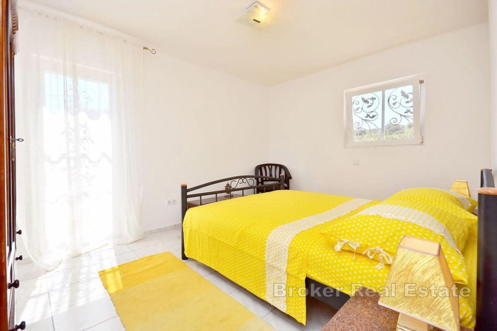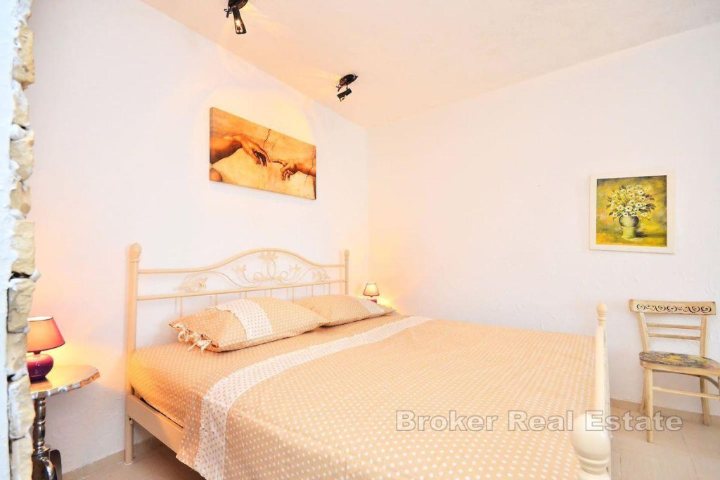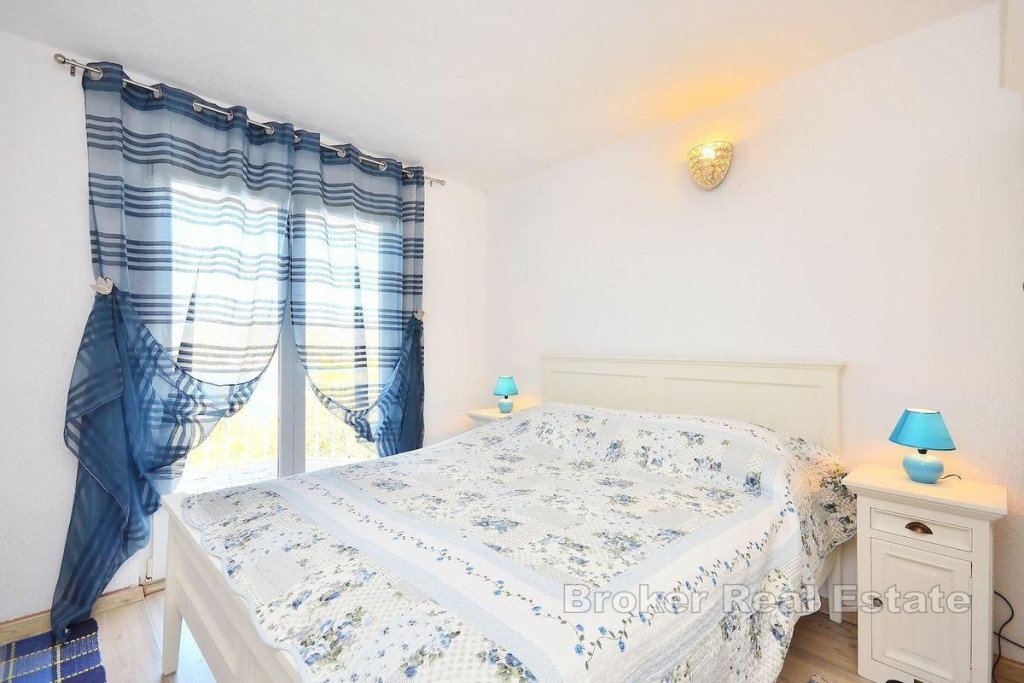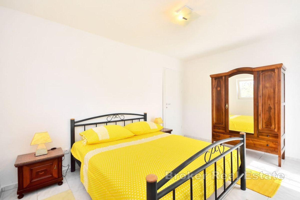 A detached house on two floors is for sale, located on an island near city of Trogir, which is directly connected to Trogir by ferry. It is a property with a total living area of 160 m2 and is located on a plot of land with a total area of 504 m2. The house consists of a ground floor and a first floor and consists of a kitchen, living room, 3 bathrooms, one toilet and four bedrooms. There is a large furnished terrace in the yard. The house is supplied with water using two large water tanks, there is no sewage system, but a septic tank is used. It is connected to electricity via a regular electrical connection. The house is located in a quiet area, on an elevated location of the island with an enchanting view of the sea. It is located near the town itself and the coast. Considering the very location of this property, it is the ideal choice for those who want to have complete intimacy and peace and for those who want to connect with untouched nature, far from the hustle and bustle of the city. BROKER REFERENCE ID:2022/390