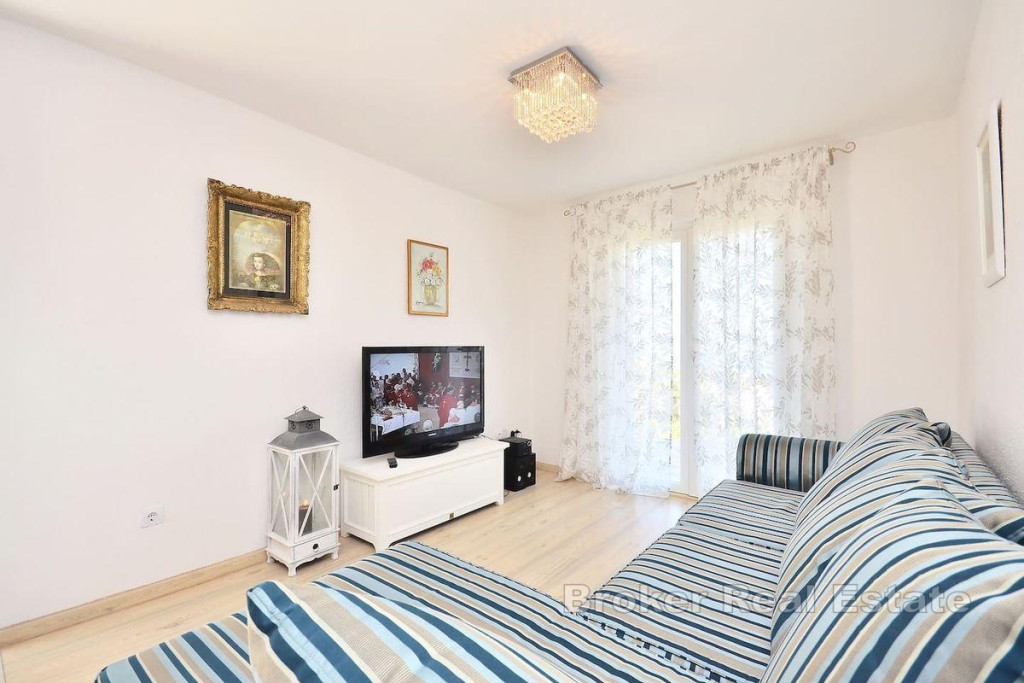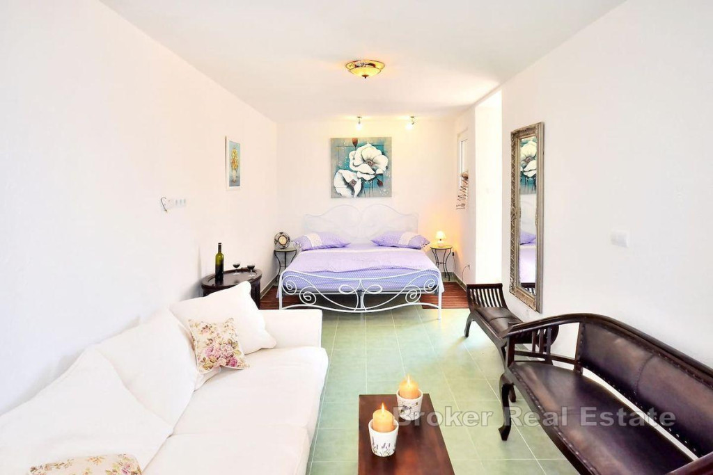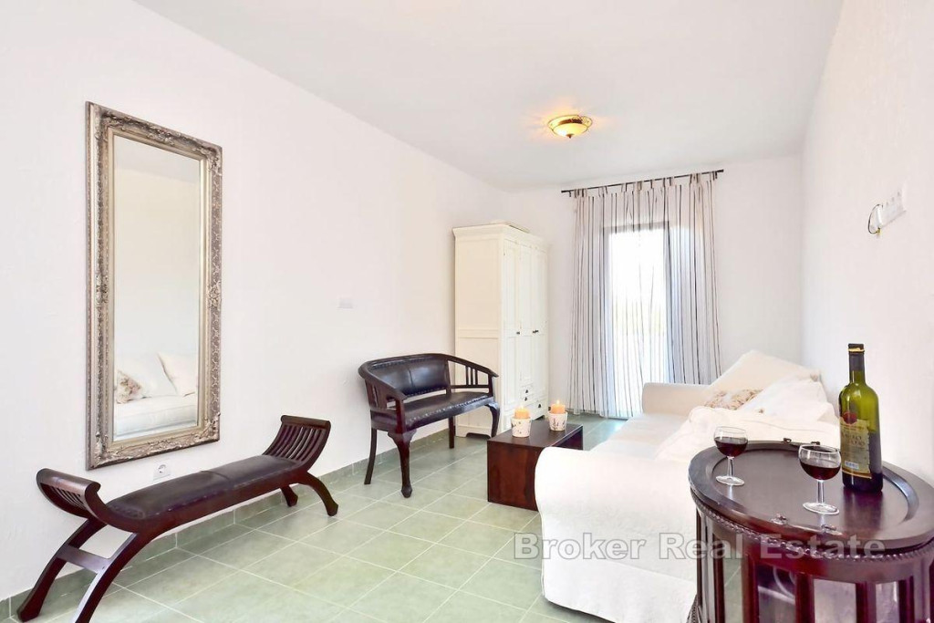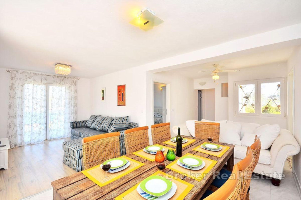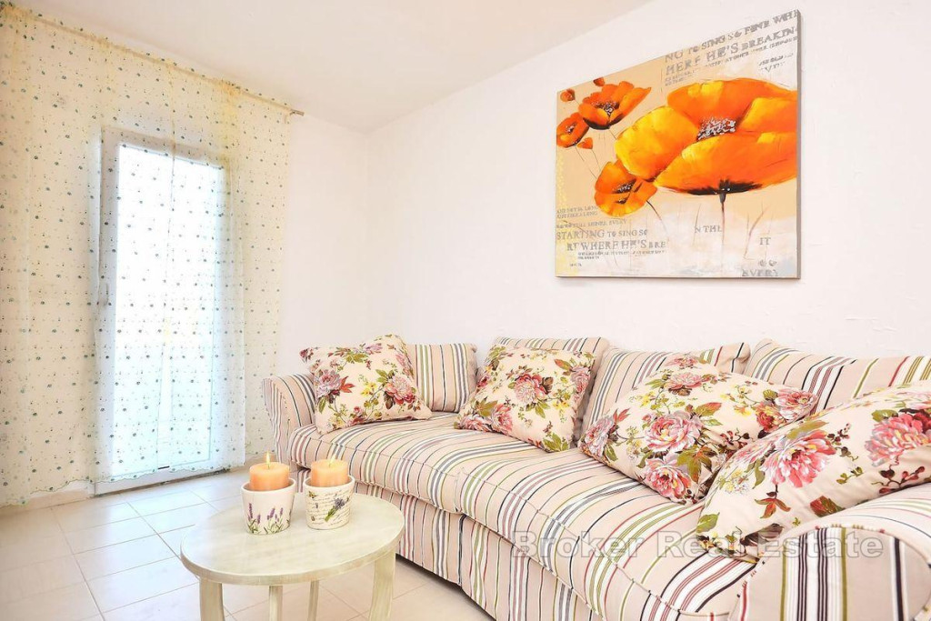 A detached house on two floors is for sale, located on an island near city of Trogir, which is directly connected to Trogir by ferry. It is a property with a total living area of 160 m2 and is located on a plot of land with a total area of 504 m2. The house consists of a ground floor and a first floor and consists of a kitchen, living room, 3 bathrooms, one toilet and four bedrooms. There is a large furnished terrace in the yard. The house is supplied with water using two large water tanks, there is no sewage system, but a septic tank is used. It is connected to electricity via a regular electrical connection. The house is located in a quiet area, on an elevated location of the island with an enchanting view of the sea. It is located near the town itself and the coast. Considering the very location of this property, it is the ideal choice for those who want to have complete intimacy and peace and for those who want to connect with untouched nature, far from the hustle and bustle of the city. BROKER REFERENCE ID:2022/390