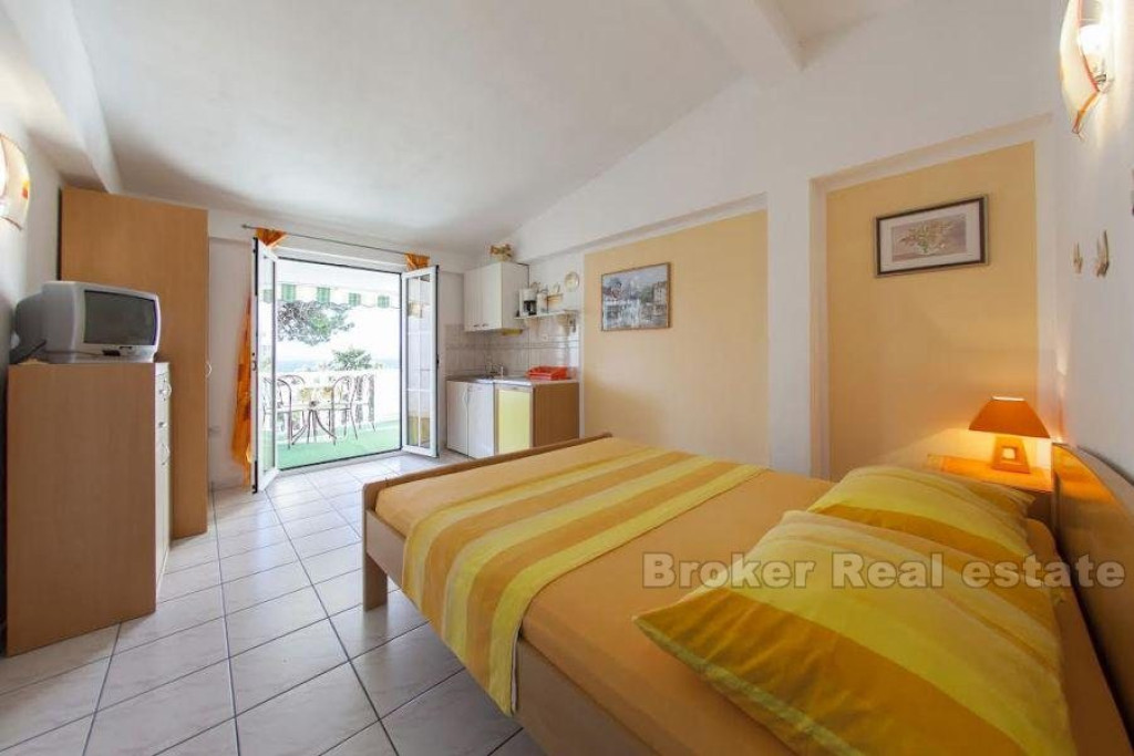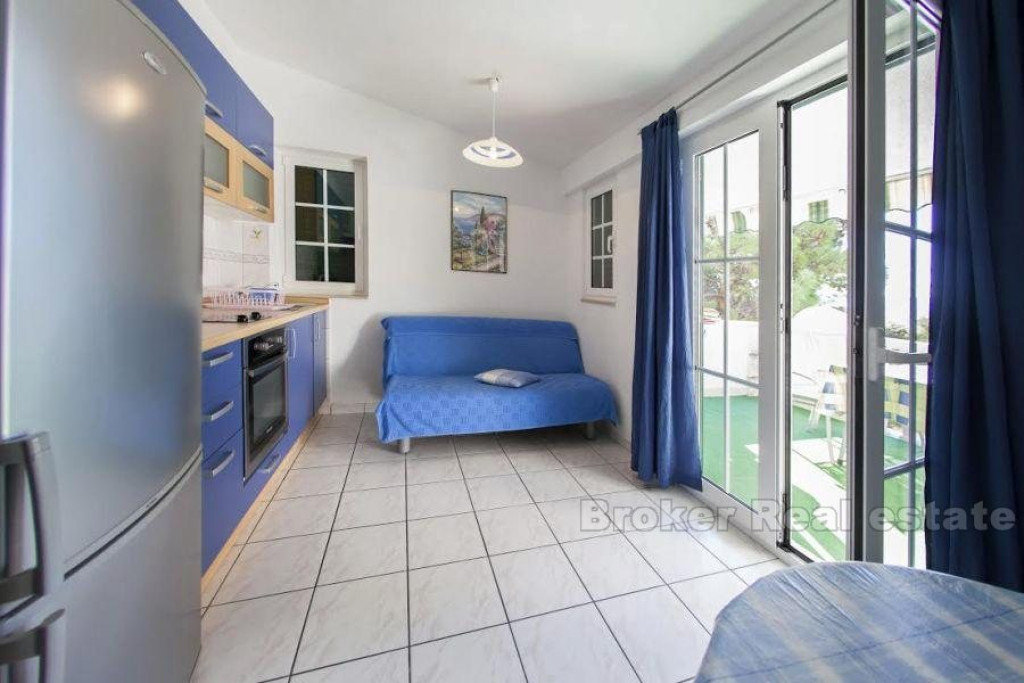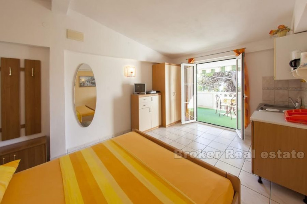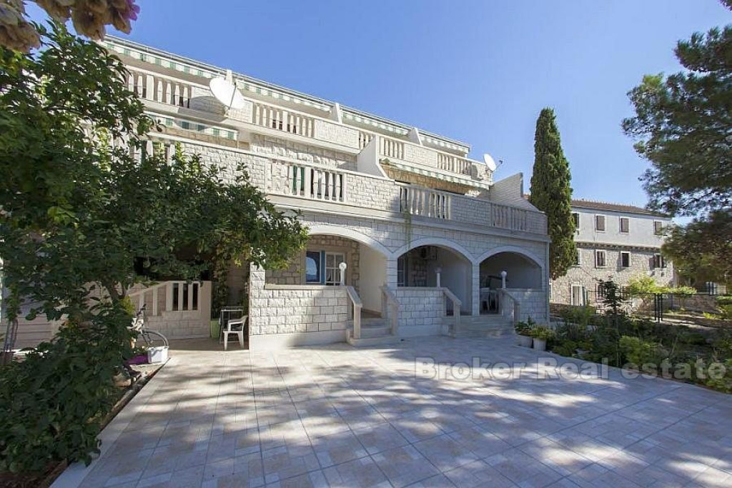 Detached apartment-villa, located only a hundred meters from the sea, on an extremely attractive location in the eastern part of Bol, on the island of Brač. The apartment / villa consists of 12 separate apartments, each with a south loggia, open sea view. Next to the property is a spacious yard, with massive Mediterranean trees offering pleasant shade on hot summer days. The total gross residential area of the building is 680 m2 and consists of ground floor and two floors. – On the ground floor there are 4 residential units and storage, – On the first floor there are 4 living units, – on the second floor 4 living units This facility is in function of renting tourists, it is profitable and has its regular guests. In front of the building there is a basement-garage area of 73 m2, which is currently converted into business premises and can easily be converted into a parking space. BROKER REFERENCE ID:2021/90