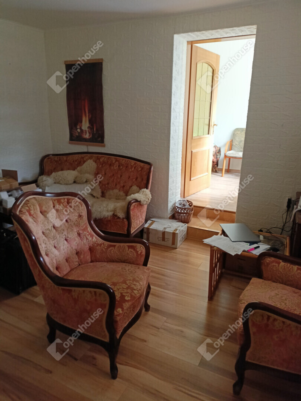 A házba egy nagyméretű, fából készült tornácon keresztül tudunk bejutni. Az előtérből jutunk be a nagyszobába, a konyhába, valamint az egyik hálószobába. A harmadik szoba a hálószobából nyílik. A vizesblokk a konyhából közelíthető meg.