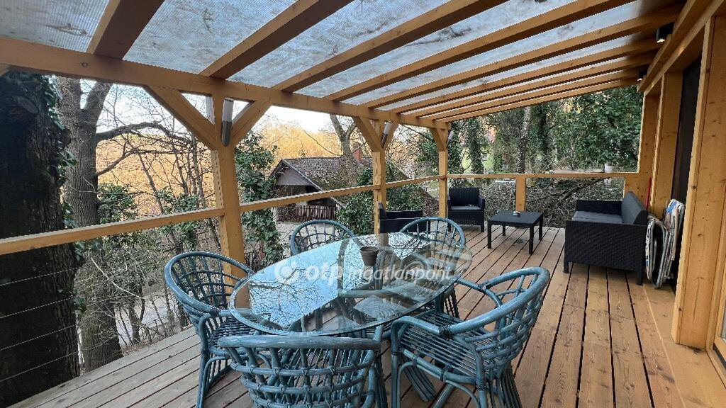 A felújítás során kialakításra került egy tágas, világos, panorámás nappali, amely egy légtérben helyezkedik el a konyhával és az étkezővel, ezáltal modern, jól élhető életteret biztosít, továbbá két kényelmes méretű szoba és egy igényesen kialakított, modern fürdőszoba is helyet kapott az ingatlanban. A nappali közvetlen kapcsolatban áll egy nagy méretű, panorámás terasszal, amely tökéletes helyszíne lehet a reggeli kávézásoknak vagy a nyugodt esti pihenésnek, miközben a környező erdő és a természet közelsége különleges hangulatot teremt.