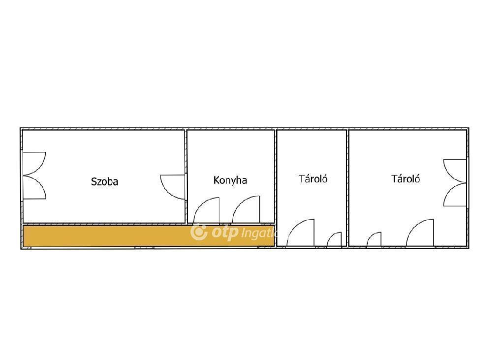 A házat négy helyiség alkotja, melyhez tornácos folyosó kapcsolódik, ezáltal eredeti karaktert kölcsönöz az épületnek. A belső terek újragondolása könnyedén megvalósítható, mivel az ingatlanba háromfázisú ipari áram került bevezetésre, a víz- és csatornahálózatot pedig már bekötötték, ennek köszönhetően a jelenlegi tároló akár fürdőszobává alakítható. A gázcsonk a telken belül rendelkezésre áll, így a gázfűtés kiépítése is adott.