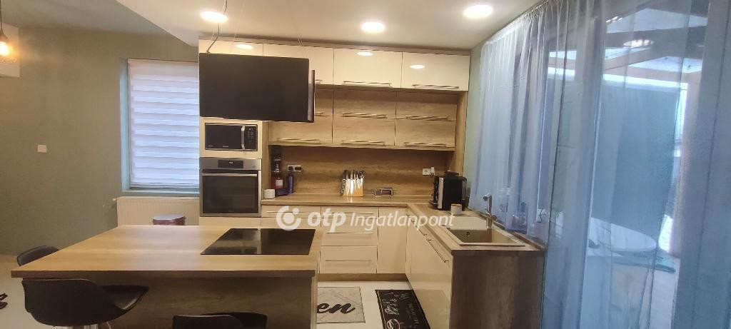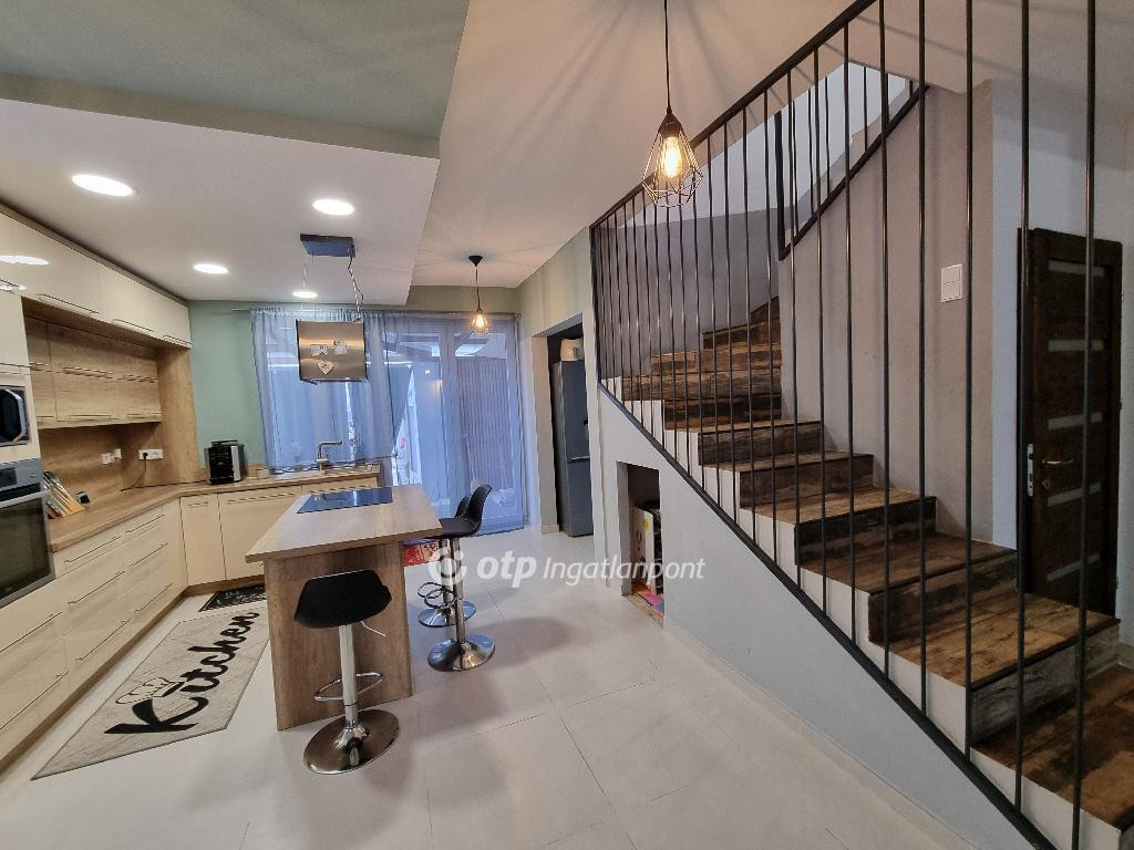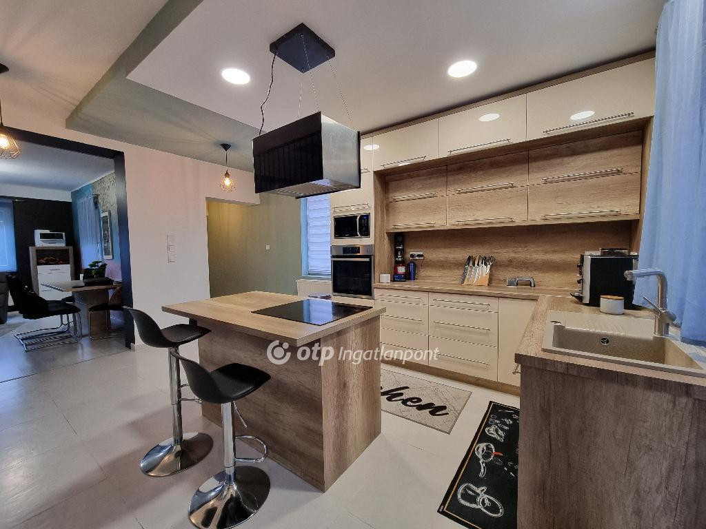 Veszprém vármegyében, Nyárádon, nyugodt, csendes településen kínálok megvételre egy 160 m2-es remek elrendezésű, kétszintes, igazán otthonos családiházat, 1435 m2 területű telken. A külső tereket felújították, az udvar térkövezett és füvesített, az ingatlant modern kerítés veszi körül, elektromos kapuval. A ház kiváló statikai és szerkezeti állapotú, minden helyiségére jellemző, hogy világos, igazán otthonos. A község Pápától 13 kilométerre fekszik, tömegközlekedéssel és személygépkocsival Győr, Veszprém és Celldömölk is könnyen elérhető. A tégla szerkezetű ingatlan 2020-tól teljeskörű felújításon esett át. A ház 30 cm-es tégla falazattal rendelkezik, amely 10 cm-es hőszigetelést kapott. A szintek között vasbeton szerkezetű födémmel. A tetőszerkezet 15 cm vastag gyapot szigeteléssel ellátott. A kiváló elosztású ingatlan jelenlegi állapota szerint áll: amerikai konyhás nappali és étkezőből, 1 teljes értékű külön bejáratú szobából, 2 félszobából, előszobából, két fürdőből és WC-ből, közlekedőből, valamint mosókonyhából, 40,1 m2 területű pincéből áll. A lenti és az emeleti lakóteret egy gyönyörű, világos lépcsőház köti össze. A konyha modern, kiválóan felszerelt, soft close fiókos konyhabútor, nagyméretű konyhasziget, gránit mosogatótálca, új korszerű munkagépek állnak rendelkezésre. A ház további részében garázs, tároló helyiségek, műhely, illetve fatároló foglal helyet. Az alsó szinthez fedett terasz kapcsolódik, ami kellemes pihenési lehetőséget nyújt a nyári napokra. Az udvari rész teljesen rendezett, parkosított, melléképületekkel, gyermekjátszótérrel, kerti tóval, 200 m2 térkövezett résszel. A telek hátsó része külön leválasztott, kétszárnyú kapuval zárható, füvesített terület, melyet három oldalról zöld sövény határol. Téli hideg napokon a ház melegéről központi fűtéssel, radiátoros hőleadással, vegyestüzelésű kazán gondoskodik. A két szint külön termosztáttal szabályozható, ami kényelmes és gazdaságos működést tesz lehetővé. A melegvíz ellátásról egy 120 literes villanybojler biztosítja. Tetőszerkezete kifogástalan állapotú, Bramac tetőcserép fedi, a megfelelő hő- és páravédelem érdekében 15 cm-es nikecell szigeteléssel és párazáró fóliával készült. Az energiafelhasználást egy 6 kW-os napelemrendszer segíti, amely jelentősen csökkenti a fenntartási költségeket. Az elektromos hálózat 3×16 A, ipari áram is van. A nyílászárók mindenhol új, korszerű műanyagok, redőnnyel, szúnyoghálóval ellátottak. Gázcsonk a telken belül található, szennyvízcsatorna van. A ház elhelyezkedése szempontjából meglehetősen jó adottságokkal rendelkezik, tágas, világos terek és nagy udvar tartozik hozzá. Ajánlom mindazon érdeklődők figyelmébe, akik falun, de mégis több városhoz közel, nyugodt családias környezetben keresnek egy felújított, tágas, világos belső terekkel rendelkező otthont, minden tevékenységüknek helyet biztositó, rendezett telekkel. Az OTP Ingatlanpont teljes körű ügyintézéssel áll az eladók és a vevők rendelkezésére. A kínálatunkból választott ingatlan finanszírozásához kedvezményes hitelkonstrukciót kínálunk. Ez az ingatlan megfelel a fix 3%-os Otthon Start Hitelprogram feltételeinek! Az adásvételi szerződés megkötéséhez igény szerint megbízható ügyvédi közreműködést biztosítunk, és segítséget nyújtunk az adásvételhez kapcsolódó ügyek intézéséhez is. Amennyiben felkeltette érdeklődését az általam kínált ingatlan, keressen bizalommal. Ne szalassza el ezt a figyelemre méltó lehetőséget, hívjon ma!