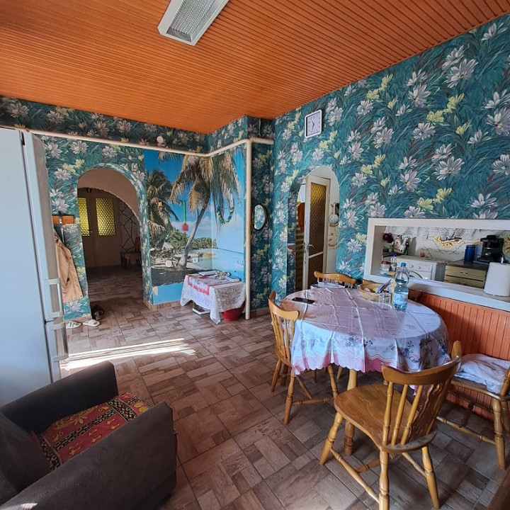 A fő lakóház lakóterülete kb. 60 m2, melyben előtér, 1 szoba, 1 félszoba, konyha, étkező, kamra, fürdőszoba található, valamint 2 fedett terasz tartozik hozzá.