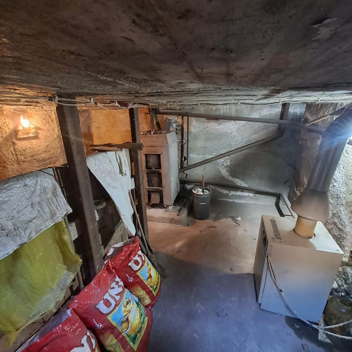 A ház 1/3-ad része alatt pince található, itt van elhelyezve a gáz-, és vegyestüzelésű kazán is, mely a fűtést biztosítja, a melegvíz ellátás villanybojlerről.