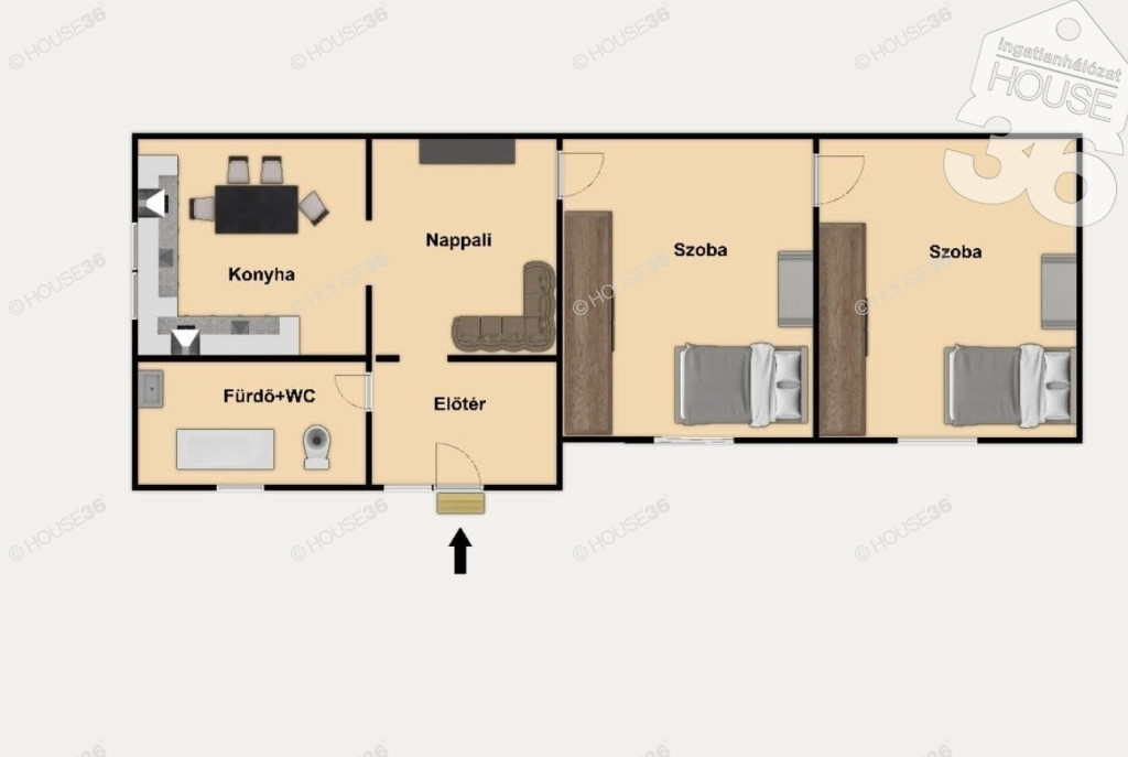 Az ingatlanban nappali + 2 szoba található 74 m2-en, ideális kis családnak vagy pároknak.