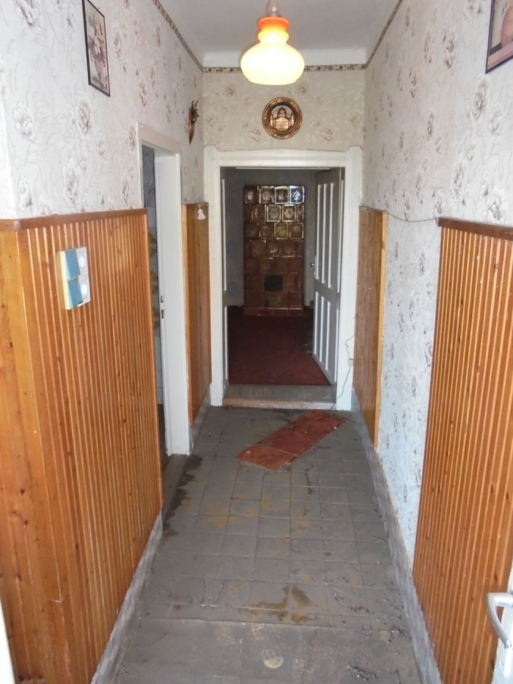 - a családi ház jellemzői: beton alap, vályog falazat, kőporos külső vakolat, stabil tetőszerkezet, pala héjazat, több bejárata van, két fő részre tagolódik, felújítást igényel