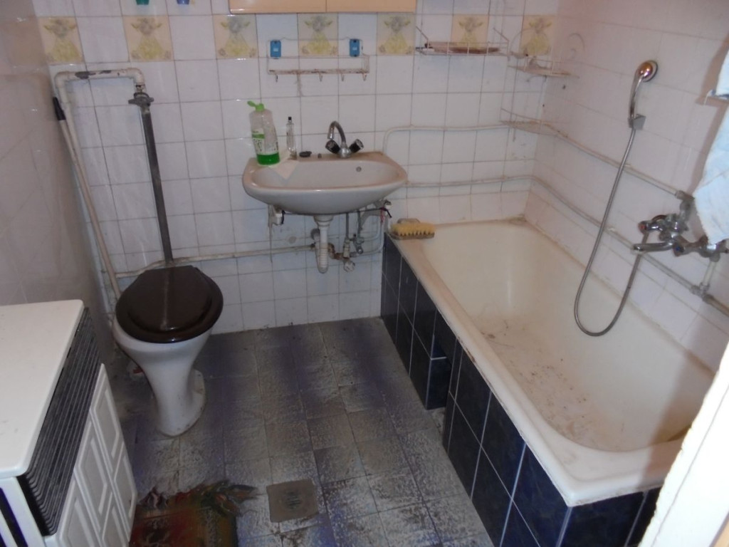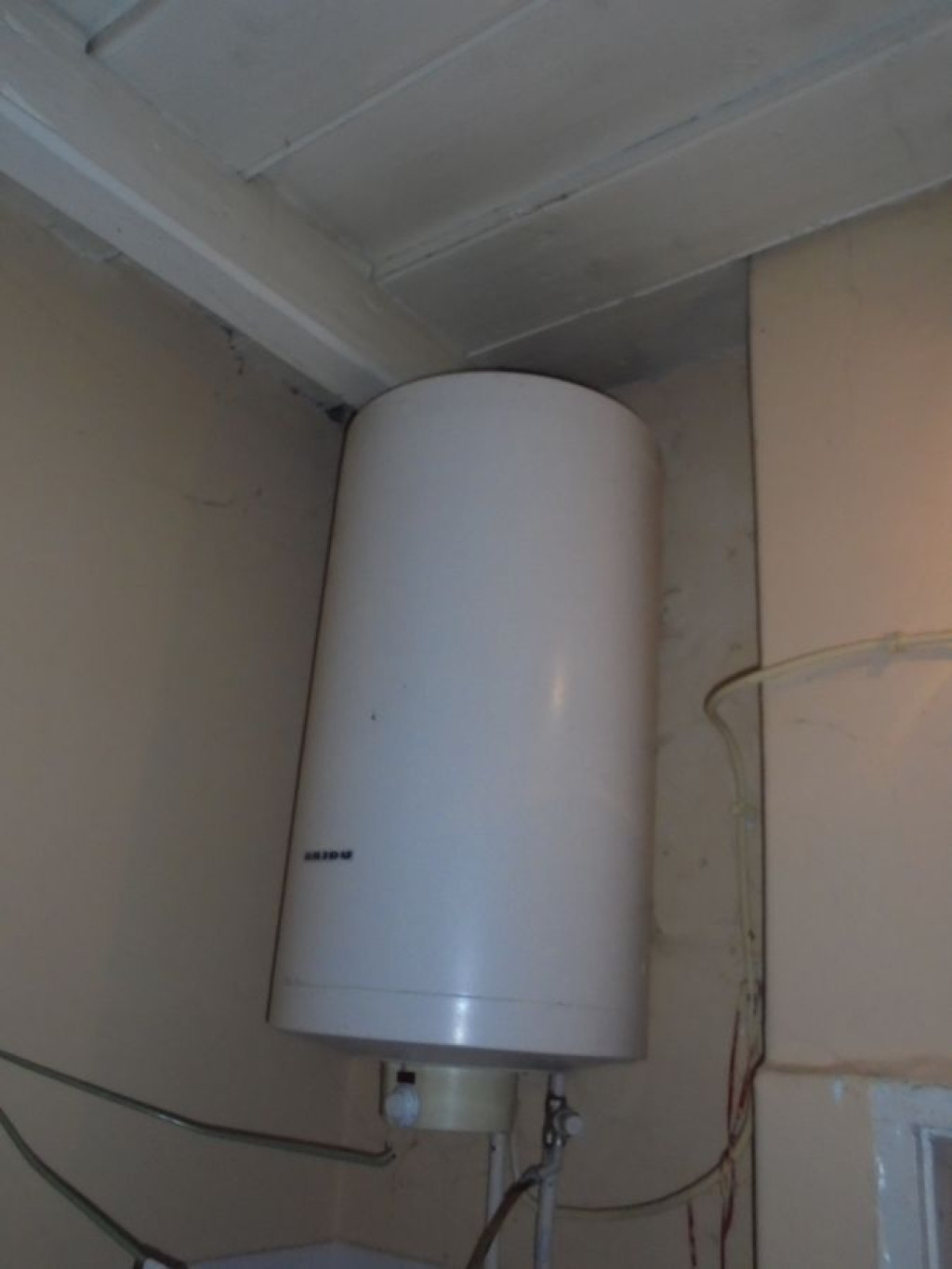 - az épület utcafronti részében egy légtérben kapott helyet a kádas fürdőszoba és a WC, a meleg vizet a villanybojler szolgáltatja