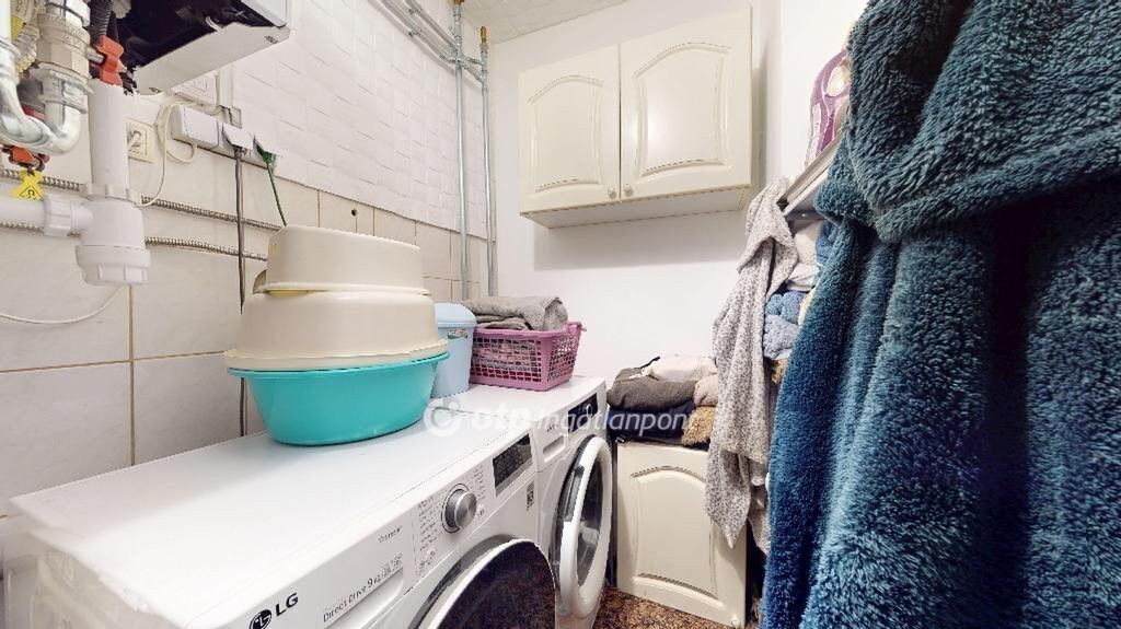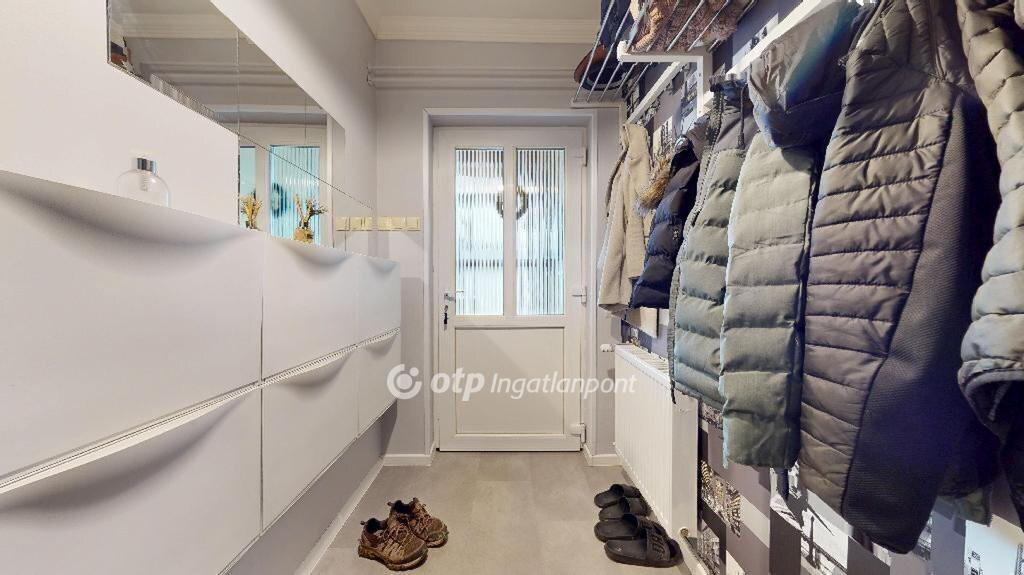 Az ingatlan tetején egy 5 kW-os napelemes rendszer működik, amely a jelenlegi elszámolás szerint még közel 5 évig gyakorlatilag nullás villanyszámlát biztosít az új tulajdonos számára. Ez nemcsak környezetbarát megoldás, hanem komoly havi megtakarítást is jelent a családi költségvetésben.