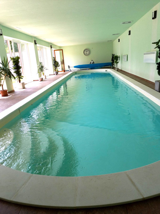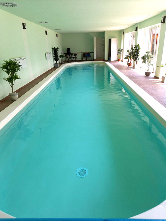 Fűtött, jakuzzi és medence (16x3,4 m) úszófolyosóval.
