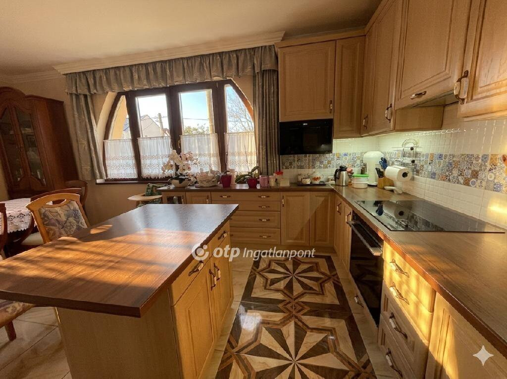 Konyha: A konyha a ház igazi ékköve, ahol egyedi, tölgyfából készült asztalosmunka várja az új lakókat, csendesen záródó ajtókkal és finoman gördülő fiókokkal. A pult prémium fából készült, a beépített gépek pedig magas minőségű Whirlpool márkájúak.