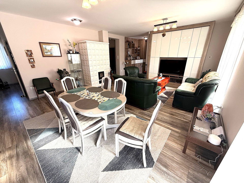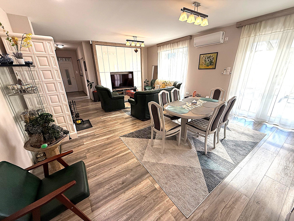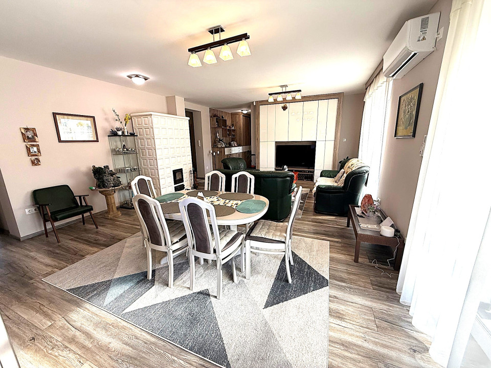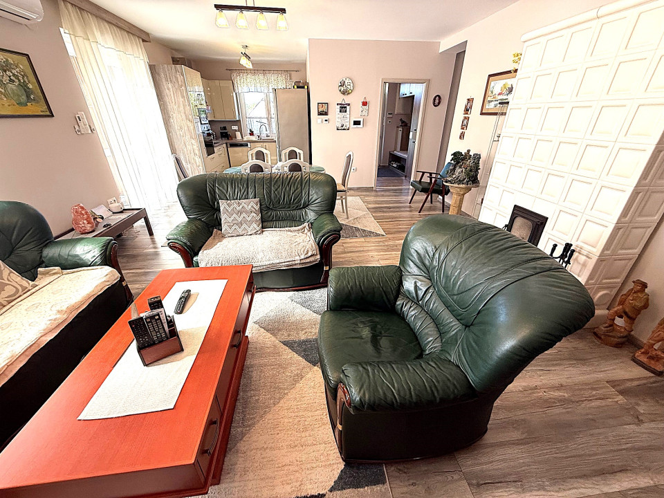 Kiegészítő fűtés: Hűtő-fűtő klíma és hangulatos cserépkályha.