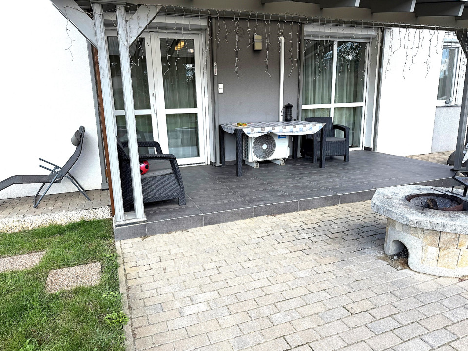 Nappali: Tágas, amerikai konyhás nappali, amely egy 18 m²-es fedett teraszra nyílik – tökéletes a családi és baráti összejövetelekhez.