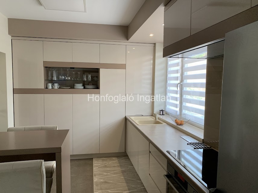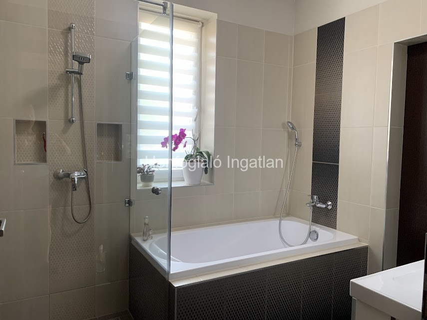 - Az egyedi belső nyílászárók, a modern burkolatok, és a beépített bútorok tovább emelik az ingatlan magas színvonalát.
