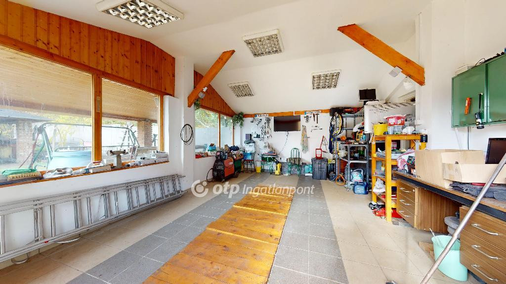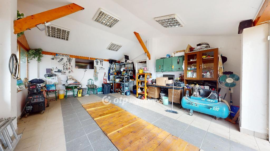 A ház alatt dupla állásos garázs biztosít kényelmes parkolást, az udvaron pedig garázs szerelőaknával, borospince, kemence és füstölő is helyet kapott. A fúrott kúttal ellátott, gondosan parkosított kert rendezett, zöld növényzettel és kellemes pihenőrészekkel teszi teljessé az otthon hangulatát.