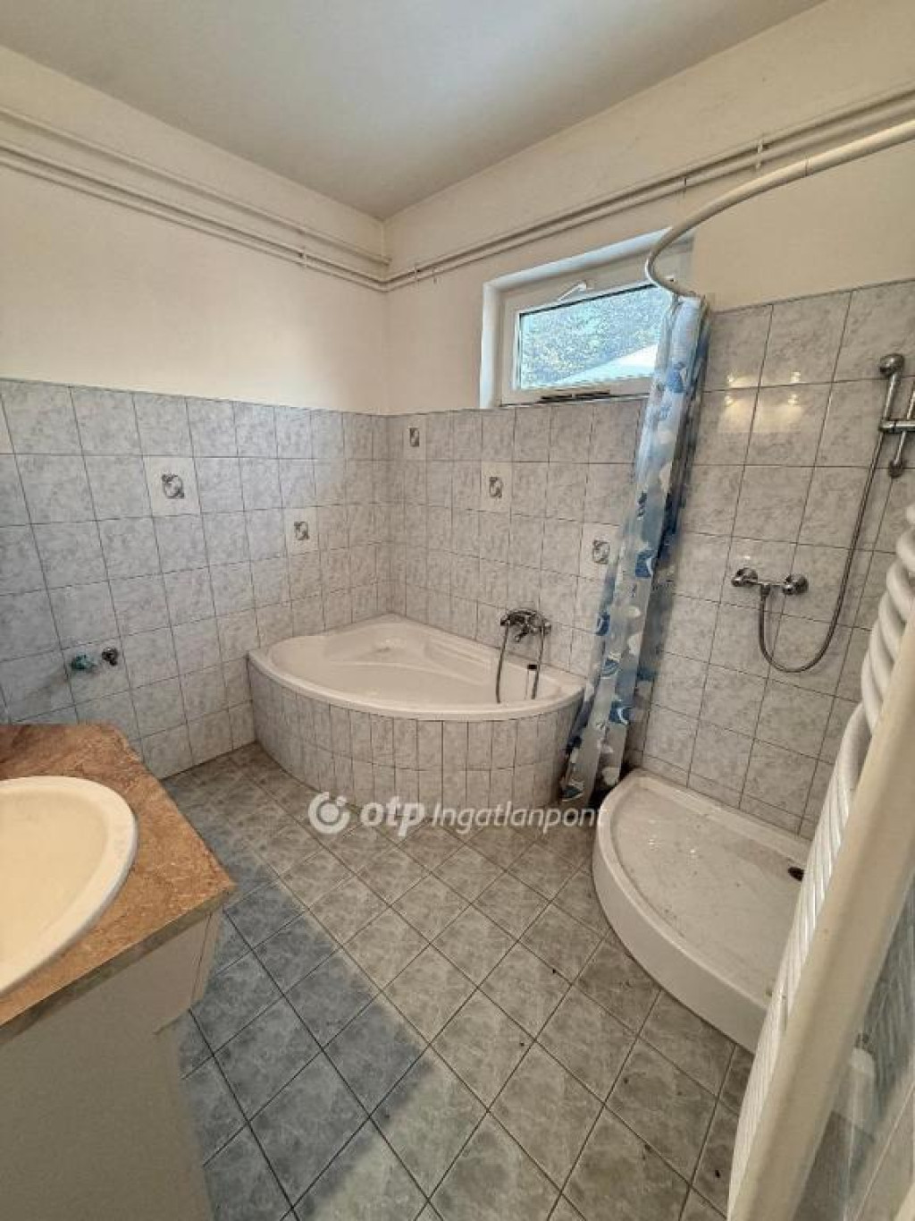 -Fürdőszoba sarokkáddal és zuhanyzóval