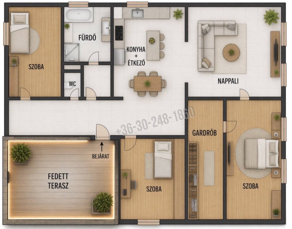 nappali + 3 szoba