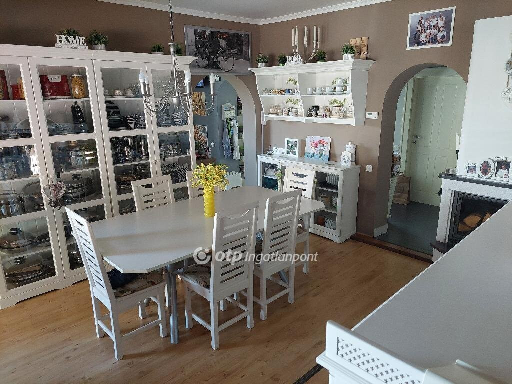 A főépület 180 m2-es, 2 szintes, tégla és szilikát falazatú, cseréptetős családi ház. Tágas, hatalmas, napfényben úszó étkező-konyhás nappali, a családi élet szintere + 4 különnyíló hálószoba. A ház energiáját napelem és hőszivattyú biztosítja. A ház alatt 12 m2-es pince és az udvarban egy kényelmes, 2 állásos garázs áll rendelkezésre.
