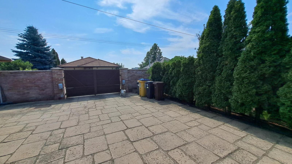Eladó a Praktiker közelében egy 2009-ben épült, mediterrán stílusú, 3 szoba + nappalis, téglából készült, szigetelt családi ház. Az ingatlan egy 741 nm-es, gondosan parkosított telken fekszik, ahol kétállásos garázs, fedett terasz, saját wellness részleg és fűtött télikert is található.