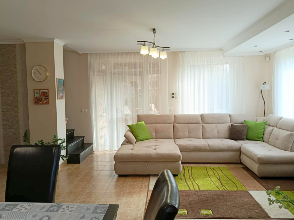 Orosi útból nyíló csendes utcában bruttó 195 m2-s ikerház eladó! Családi háznak tűnik, mert csak a garázsoknál találkozik a két rész, kerítéssel elválasztva.