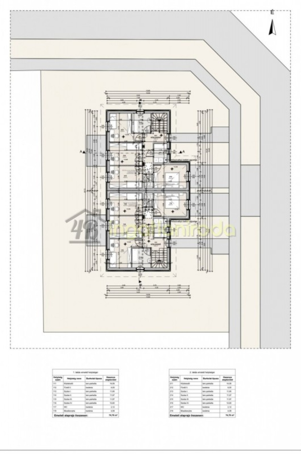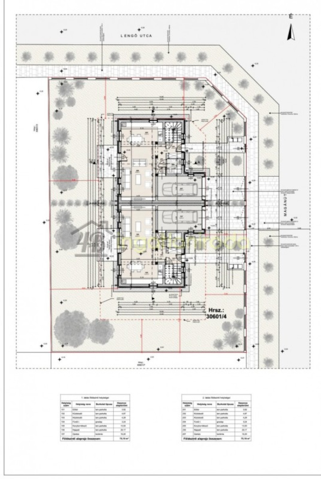 Eladó prémium ikerház Nyíregyháza-Oros között, új építésű övezetben – 4 hálószoba, szintes kialakítás, kiemelkedő energetikai besorolás!Nyíregyháza-Oros dinamikusan fejlődő, új családi házas övezetében kínálunk eladásra egy modern, szintes ikerházat, amely tökéletes választás nagycsaládosoknak, összeköltözőknek vagy azoknak, akik tágas, energiatakarékos otthont keresnek Nyíregyházán.ElhelyezkedésAz ingatlan Nyíregyháza-Oros csendes, aszfaltozott utcájában található, rendezett, új építésű környezetben. A környék kiváló infrastruktúrával rendelkezik, könnyen megközelíthető Nyíregyháza belvárosa, bevásárlási lehetőségek, iskola, óvoda, buszmegálló néhány percen belül elérhető.Telek és környezetTelek területe: 800 m²Zöldfelület: 508,58 m² (63,57%)Épületmagasság: 6,38 mCsendes, aszfaltozott utcában, rendezett, új építésű környezetbenAlapterületszámú lakás: földszint + emelet + garázs: 149,89 m²számú lakás: földszint + emelet + garázs: 149,89 m²Összes hasznos alapterület közel 300 m²Mindkét lakás elrendezése azonos, átgondolt, jól élhető terekkel.Földszint (lakásonként)Előtér: 3,92 m²Közlekedők: 4,87 m² és 4,29 m²Fürdő I.: 3,24 m²Konyha + étkező: 13,50 m²Nappali: 29,17 m²Garázs: 16,20 m²A tágas, világos nappali közvetlen kertkapcsolattal rendelkezik.Emelet (lakásonként)Közlekedő: 14,06 m²Fürdő II.: 6,00 m²Szoba I.: 11,90 m²Szoba II.: 11,97 m²Szoba III.: 11,97 m²Szoba IV.: 12,60 m²WC: 2,12 m²Mosókonyha: 4,08 m²Lakásonként 4 külön nyíló hálószoba, két fürdőszint, külön WC és mosókonyha biztosítja a kényelmes családi életet.Műszaki tartalomAlapozás:60 cm szélességű vasbeton sávalap-1,34 m mélységbenA válaszfalak vasbeton lemezre támaszkodnakFalazat:Külső főfalak: Porotherm 30 cm15 cm külső hőszigetelésBelső főfalak: Porotherm 30 cmFödém:15/15 cm-es fagerendás szerkezet30 cm hőszigetelésAlsó borítás: gipszkartonTetőszerkezet:Fa szerkezetű, összetett idomú, kontyolt nyeregtetőHőszigetelés:Földszinti padló: 15 cm lépésálló NikecellKülső falak: 15 cm hőszigetelésEmelet feletti födém: 30 cm hőszigetelésBurkolatok:Lakótér: kerámia és laminált parkettaTerasz: beton térkőFűtés:Hőszivattyús fűtési rendszer a gépészeti műszaki leírás szerintKiemelkedő energetikai megoldások, alacsony fenntartási költségAz ingatlan modern kialakításának, korszerű szerkezeti megoldásainak és energiatakarékos rendszerének köszönhetően hosszú távon is értékálló választás Nyíregyháza egyik legkeresettebb városrészében.Amennyiben hitelre vásárolna, irodánk teljes körű, díjmentes bankfüggetlen hitelügyintézést biztosít. CSOK, támogatott és piaci lakáshitel ügyintézésben is segítünk.Több mint 22 éve a nyíregyházi ingatlanpiacon – megbízható háttérrel, szakértő ügyintézéssel állunk rendelkezésére.További információért és megtekintés egyeztetéséért keressen bizalommal.IRODAI AZONOSÍTÓ: 10374