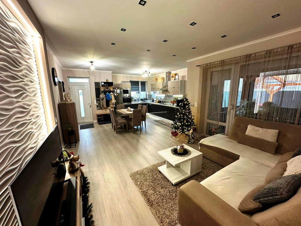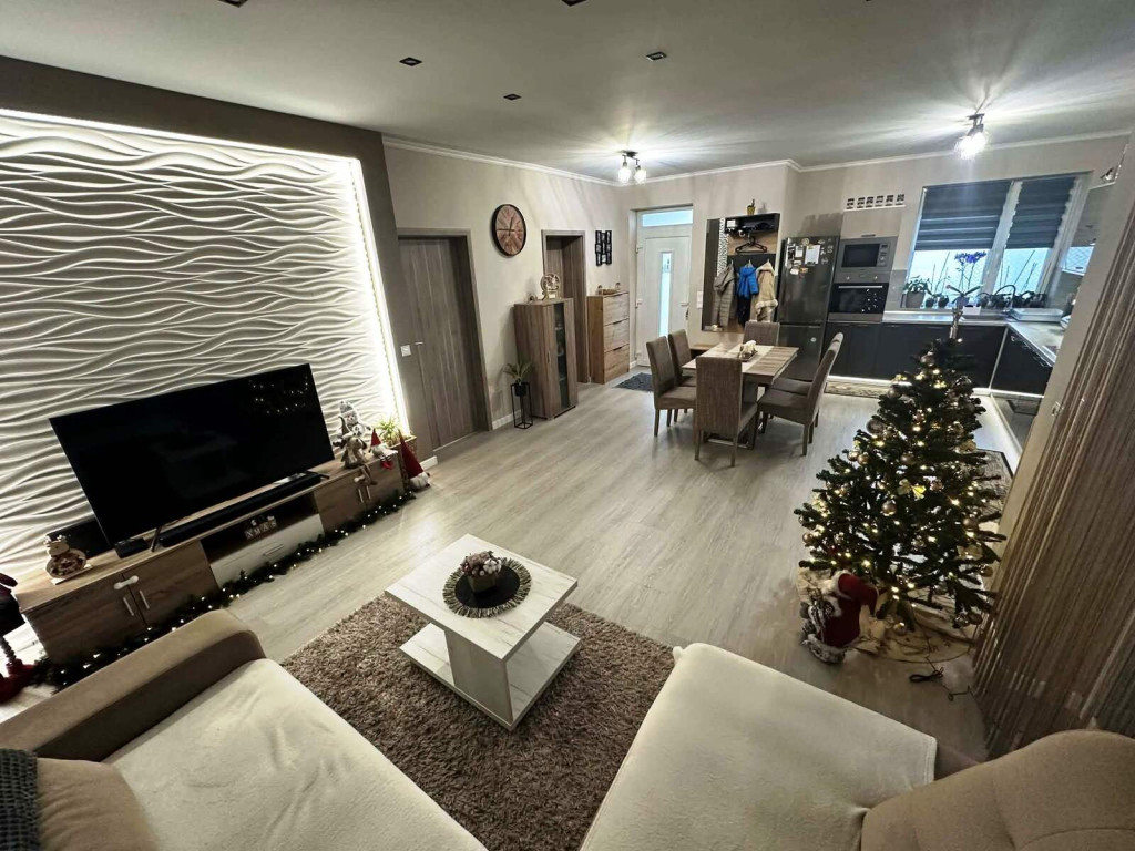 Nyíregyháza Ságvári kertváros új lakónegyedének csendes, aszfaltozott utcájában eladó egy modern építésű, 3 szobás, amerikai konyhás-nappalis, dupla garázzsal rendelkező 2019 ben épült ikerház 450m2 es parkosított telekkel.