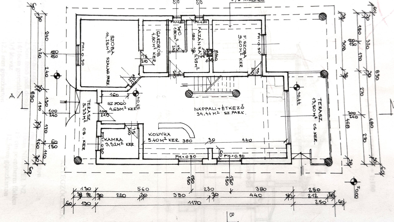 Garázs: 30 m² + 30 m² fedett autóbeálló.
