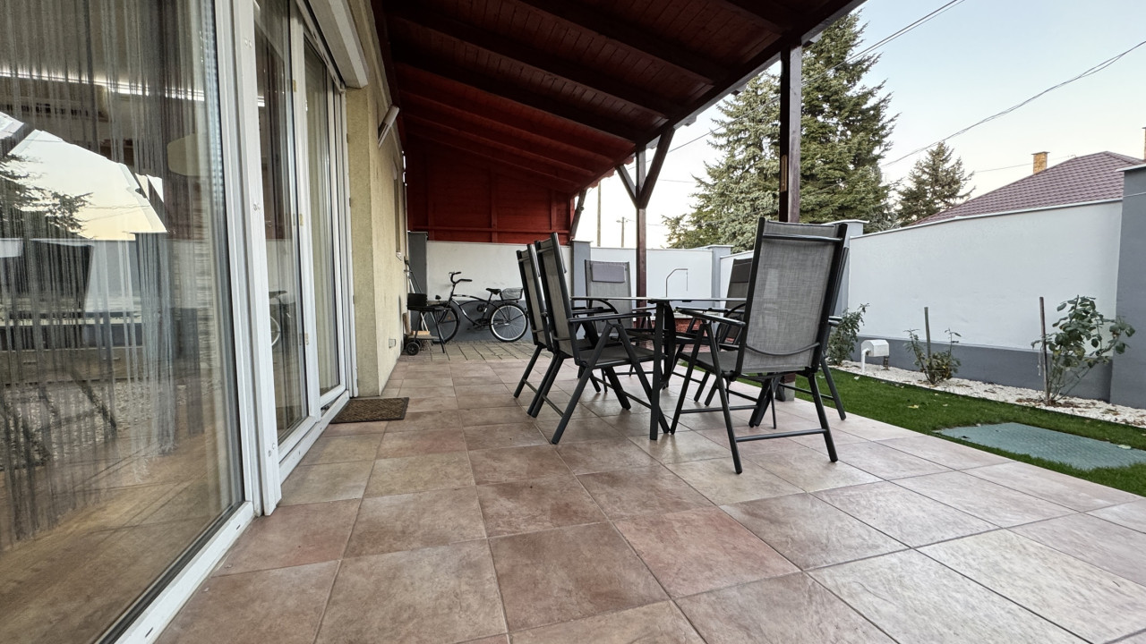 Nyíregyházán Örökösföldön a Pazonyi út közelében, 2004-ben téglából épült, 112 nm-es, 3+1 szoba-amerikai konyha-nappalis, családi sorház, terasszal, parkosított udvarral, garázzsal eladó.
