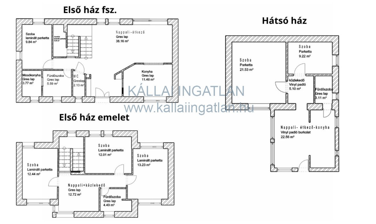 Kisebb ház: 63 m2, vályogból és téglából épült, teljes körűen felújított. A felújítás során megtörtént a nyílászárok a víz és villanyvezetékek cseréje is. Fűtését elektromos norvég fűtőpanelek és kandalló biztosítja. Ezenkívül egy klíma is beszerelésre került.