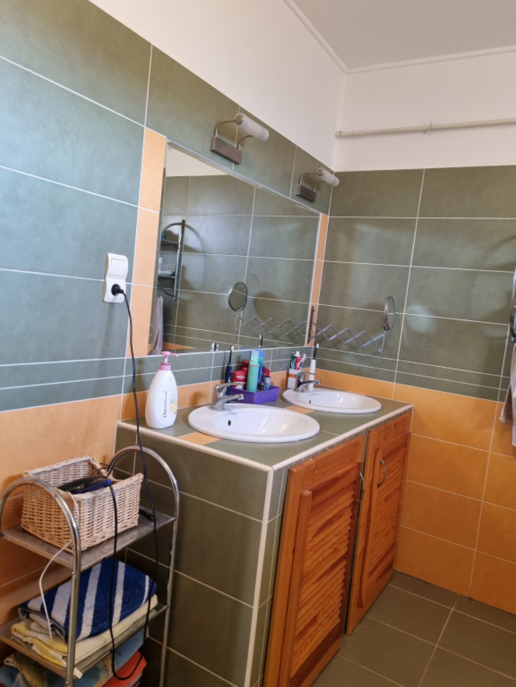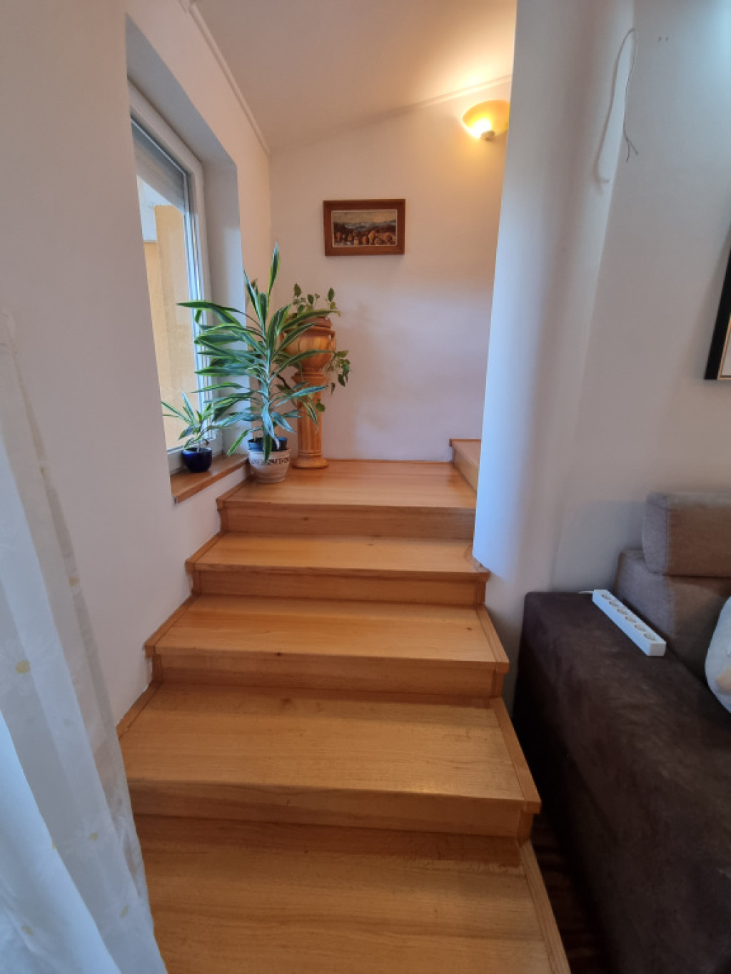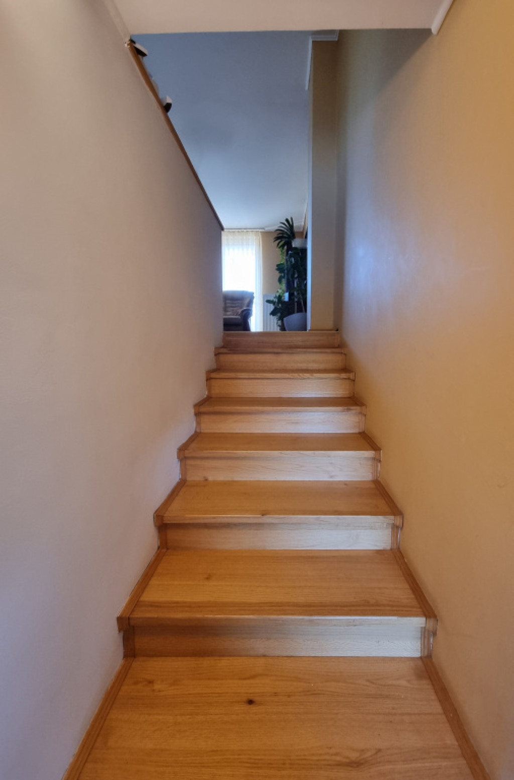 Az előszobából hangulatos, meleg, otthonos színekkel bíró nappalin keresztül érünk a jó ízléssel, minőségi anyagokból épült konyhába, mellett 3 napfényes hálóval, tágas nappalival, vidám, színes és tágas fürdőszobával. A nappaliból kilépve a fedett teraszra, elénk tárul a parkosított, automata öntözőrendszerrel is ellátott gyönyörű kert. A nappaliból a tömörfa masszív lépcsőn egy másik erkélyes nappaliba érünk, ami akár vendégszobaként is funkcionálhat, mivel mellette még egy kisebb zuhanyzós fürdőszoba található.