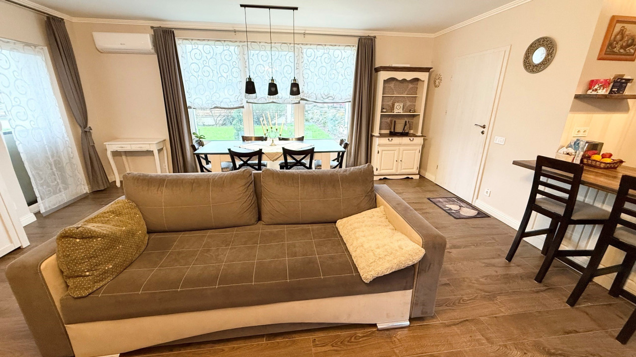 Nyíregyházán Oroson amerikai típusú 2020-ban épült, 108 nm-es, 3 szoba-amerikai konyha-nappalis, családi ikerház, 500 nm-es parkosított udvarral eladó.