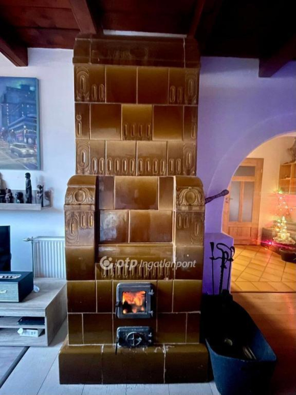 Az enteriőr meghatározó eleme egy 120 éves, restaurált angol LLOYD?S cserépkályha, amelyhez egyedi, kézikovács által készített szerszámok tartoznak.