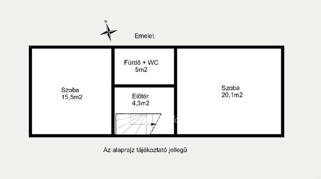 - Emeleten helyezkedik el 2db nagy méretű szoba (a nagyobb szoba kettő kisebb szobára szétválasztható), kényelmes fürdőszoba sarokkáddal, előtér