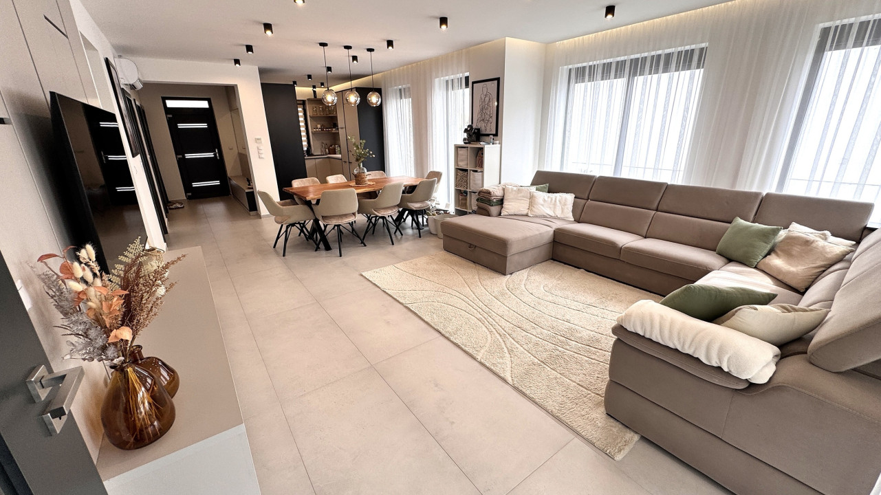 Lakótér: 136 m² (amerikai konyha-nappali + 3 hálószoba).